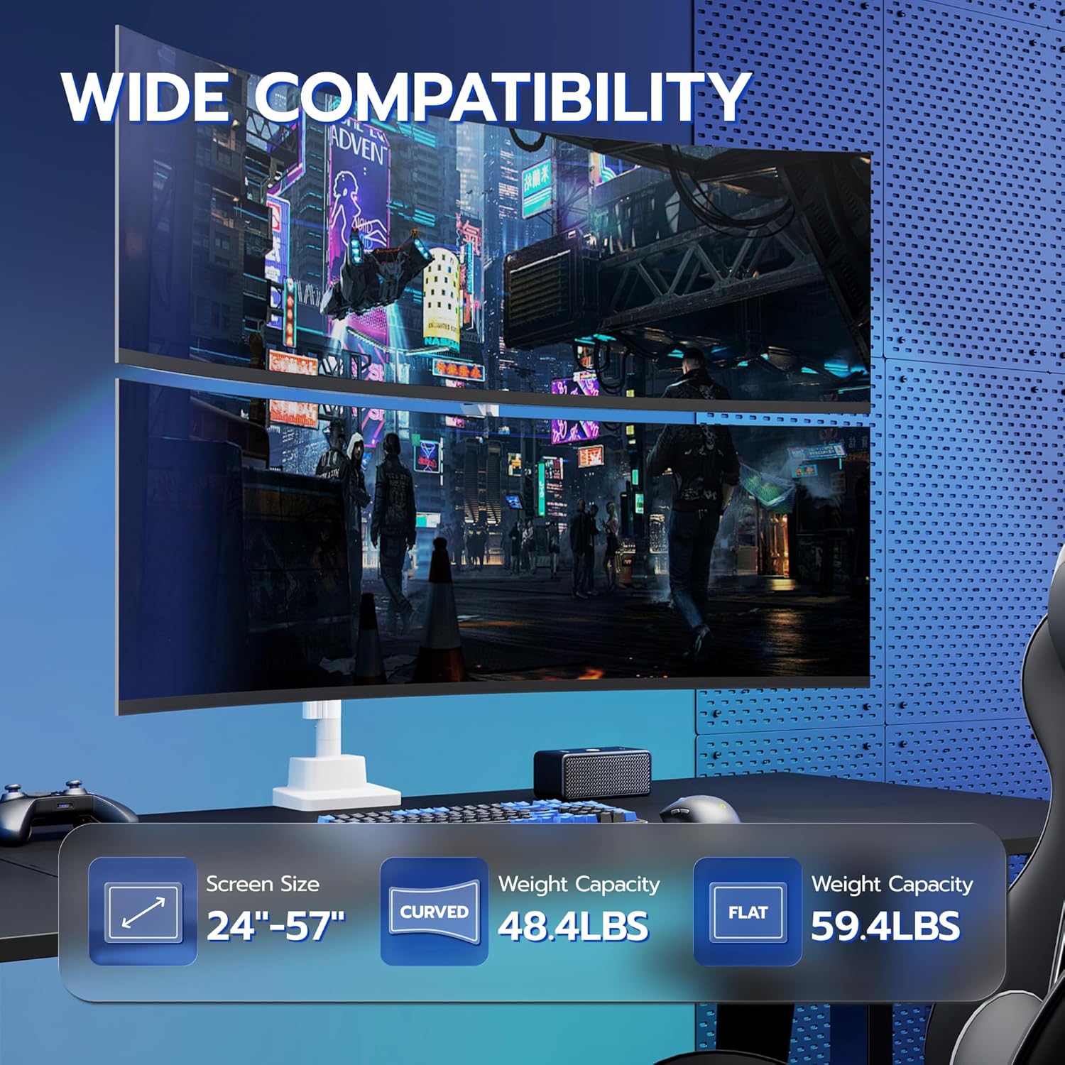 - 【Born for Ultrawide Screens】 Ultrawide monitor arm made with high-quality aluminum, featuring enhanced tilting structure and gas springs, effortlessly hold flat screen up to 59.4 lbs & curved up to 48.4 lbs each arm, VESA patterns include 75x75, 100x100, 200x100, 200x200mm. Compatible with the Samsung Odyssey G9, LG, and other ultrawide monitors