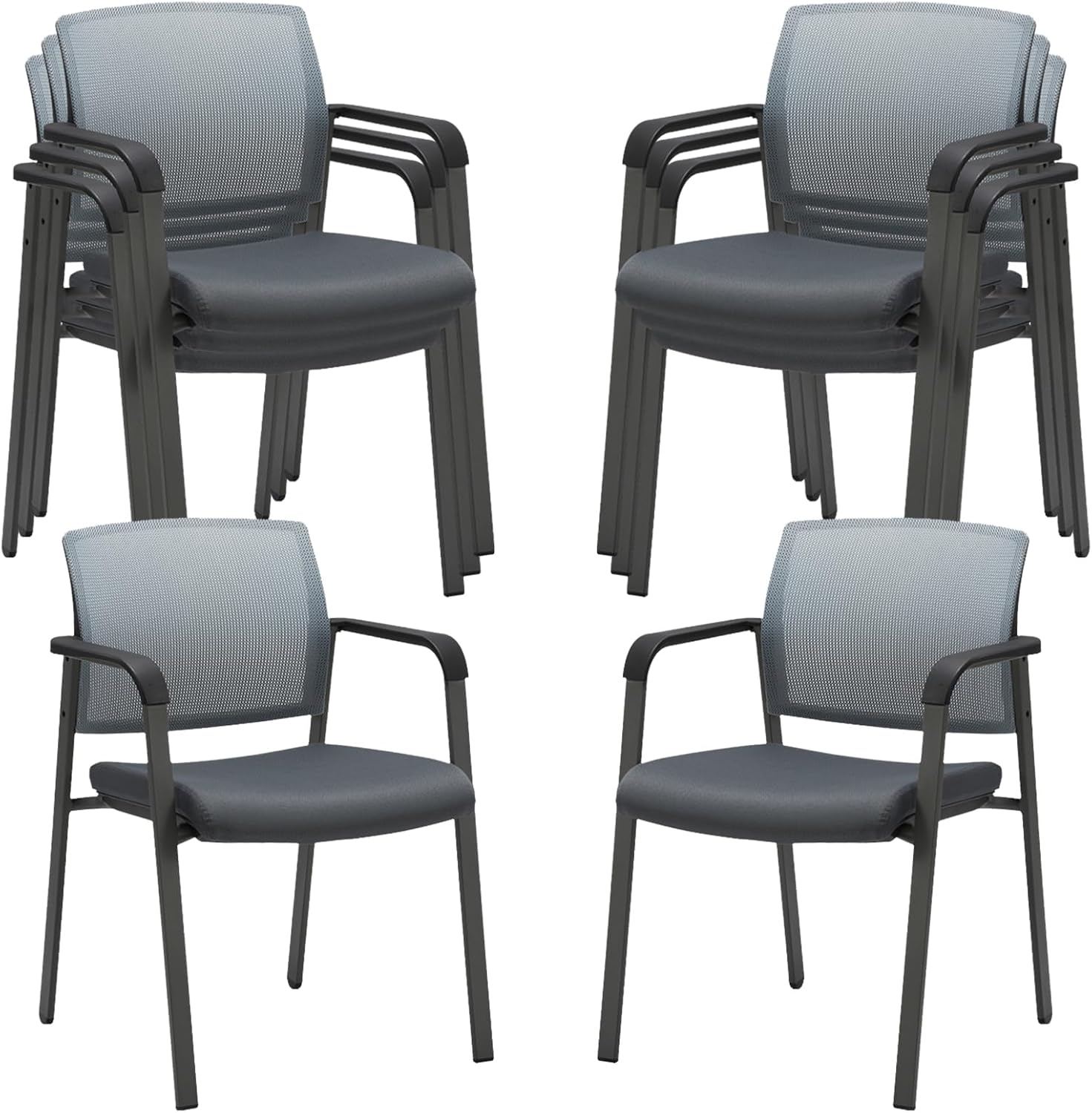 CLATINA Mesh Back Stacking Arm Chairs with Upholstered Fabric Seat and Ergonomic Lumbar Support for Office School Church Guest Reception Grey (Gray-8 Pack)