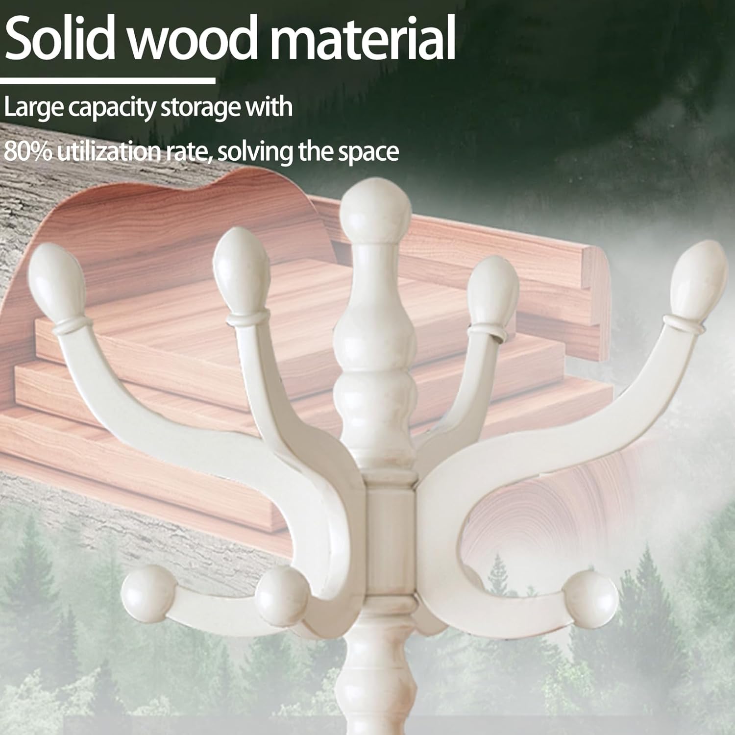 Wooden Coat Rack, Heavy Duty Coat Rack Freestanding with 11 Smooth Hooks, Coat Tree, Vintage Clothes Hanger Stand with Stable Disc Base for Bedroom, Entryway, Office-Load 180lbs (Ivory White)