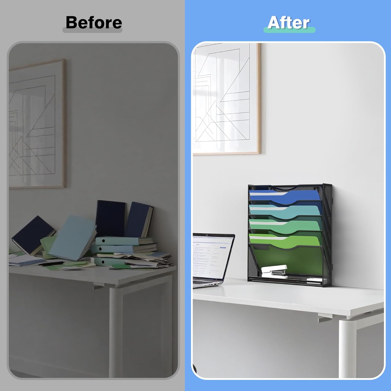 Kuntine.B Wall File Organizer Office Hanging Magazine Holder Wall File Organizer for Office Home (Black, 6 Tier & Hangers)