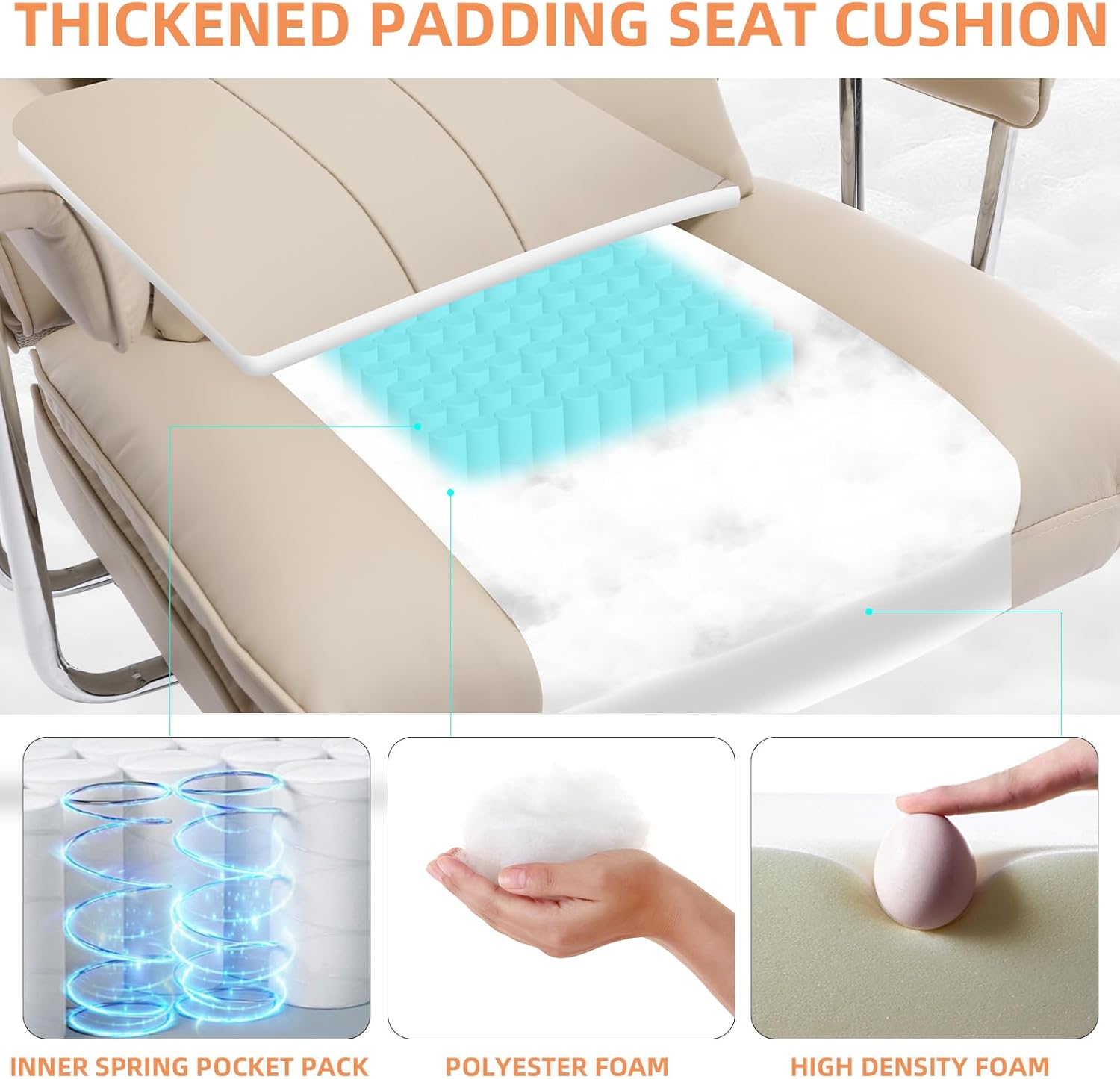 Big and Tall Office Chair 500lbs Wide Seat Executive Office Desk Chair High-Back Office Task Chair, Ergonomic Lumbar Support Computer Office Chairs for Heavy People(Beige)