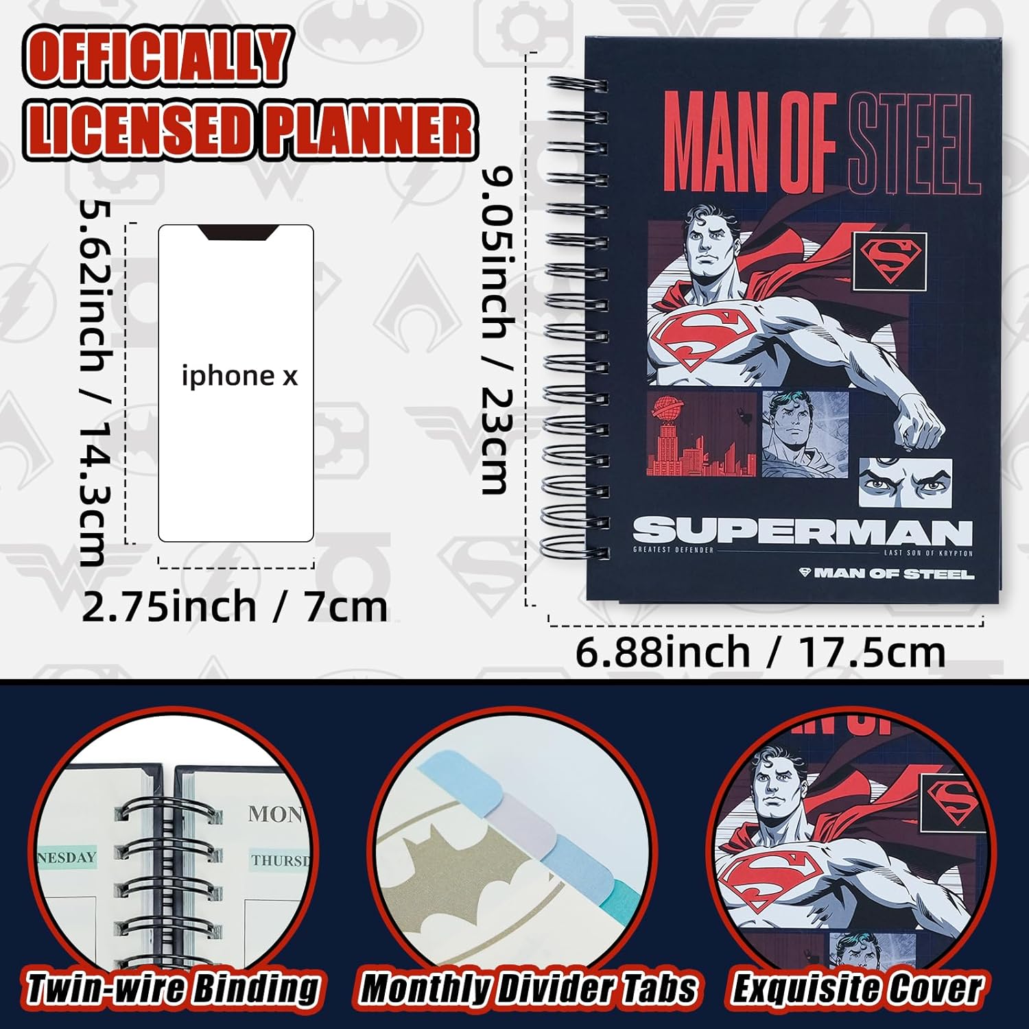 Hero Academic Planner, Weekly Monthly Daily Agenda, Custom Date Organizer for Time Management, Spiral Bound Notebook with Colorful Tabs,Datebooks for School Office Home(Navy Red)