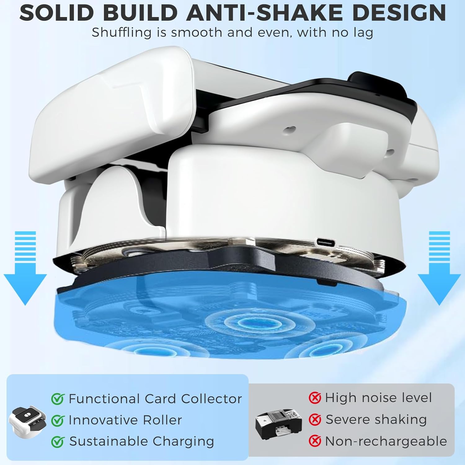 - QUIET OPERATION: Crafted from premium ABS material, this auto card shuffler ensures an undisturbed gaming environment with its low-noise operation, keeping your game night focused and enjoyable. Experience quieter, more pleasant gameplay with this efficient shuffling device