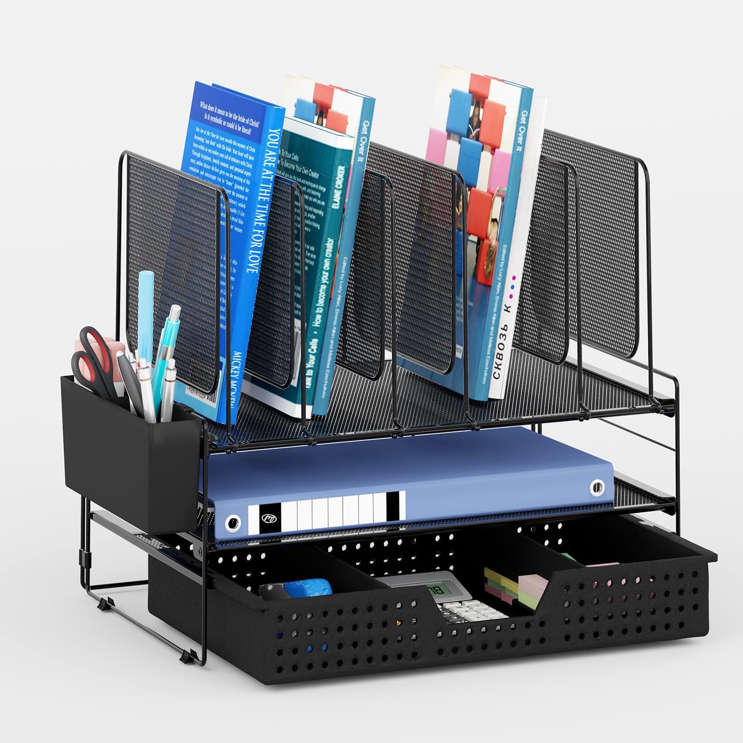 - { Multi-Functional } Upright section racks are removable for larger books and binders. The desktop organizer is not just for office organization, it can also be used in home, school, classroom, college, dorm and other places. Let‘s declutter your desk and keep everything well-organized