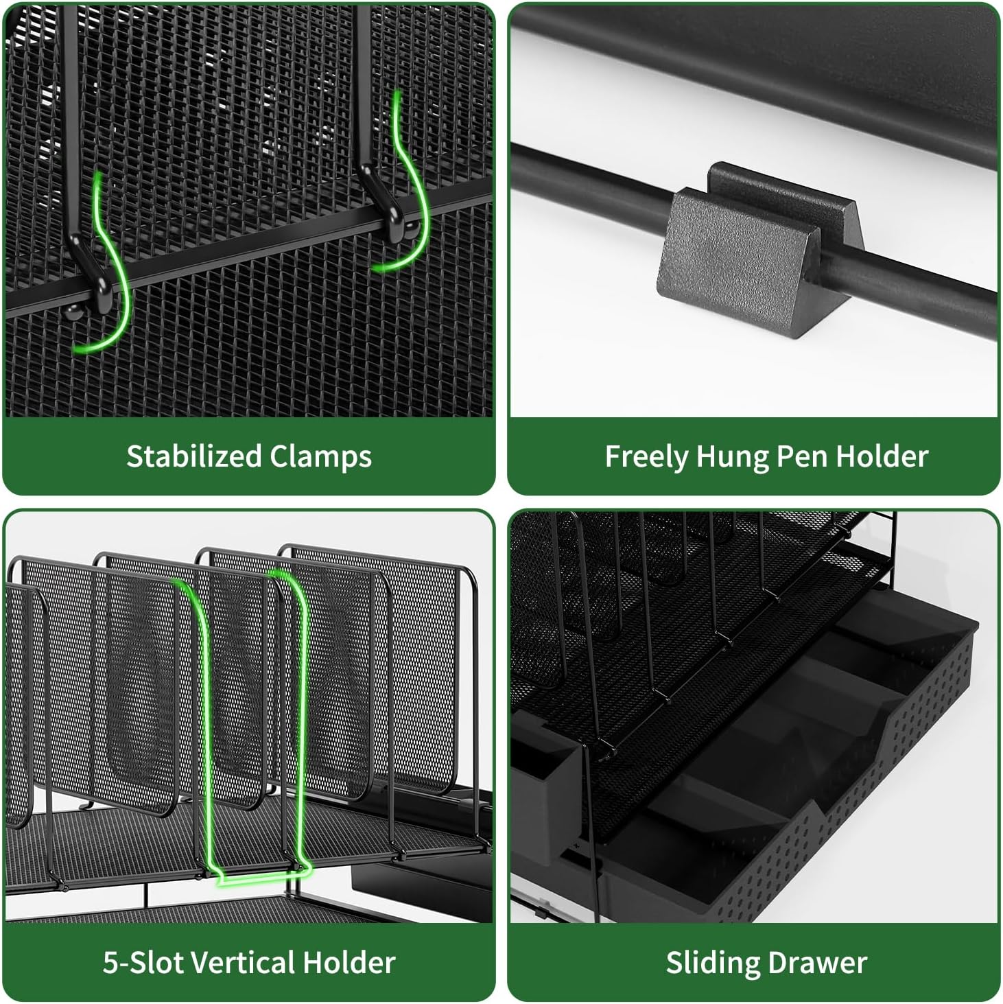 - { Sturdy & Durable } Made of premium metal, the workspace organizer is sturdy and durable for a long-lasting use, providing a stable desk top storage solution. Smooth surface and rounded edges are designed for safe use and will not damage documents
