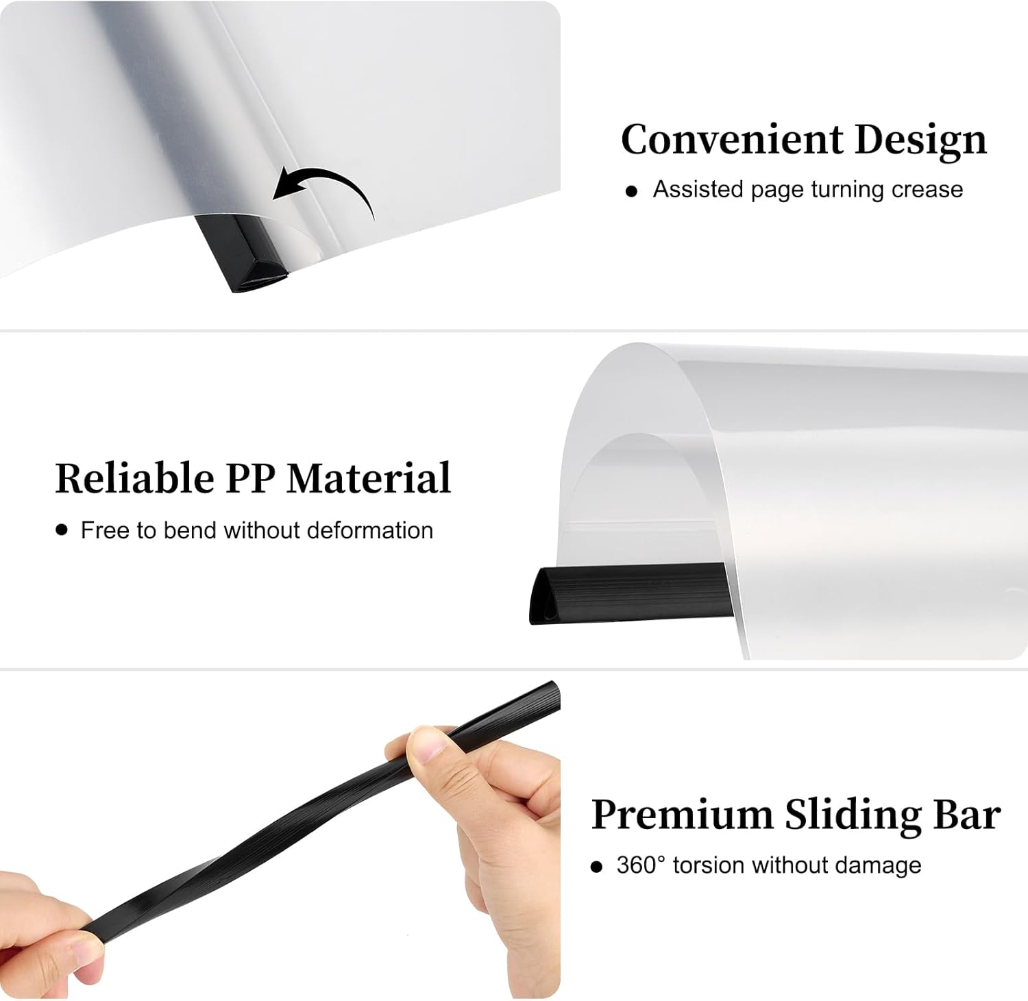 JOERSH 20Pcs Clear Report Covers with Sliding Bar, 40 Sheet Capacity Plastic Binder Paper Protector, Report Folders with Clear Cover for Resume File Documents, Black
