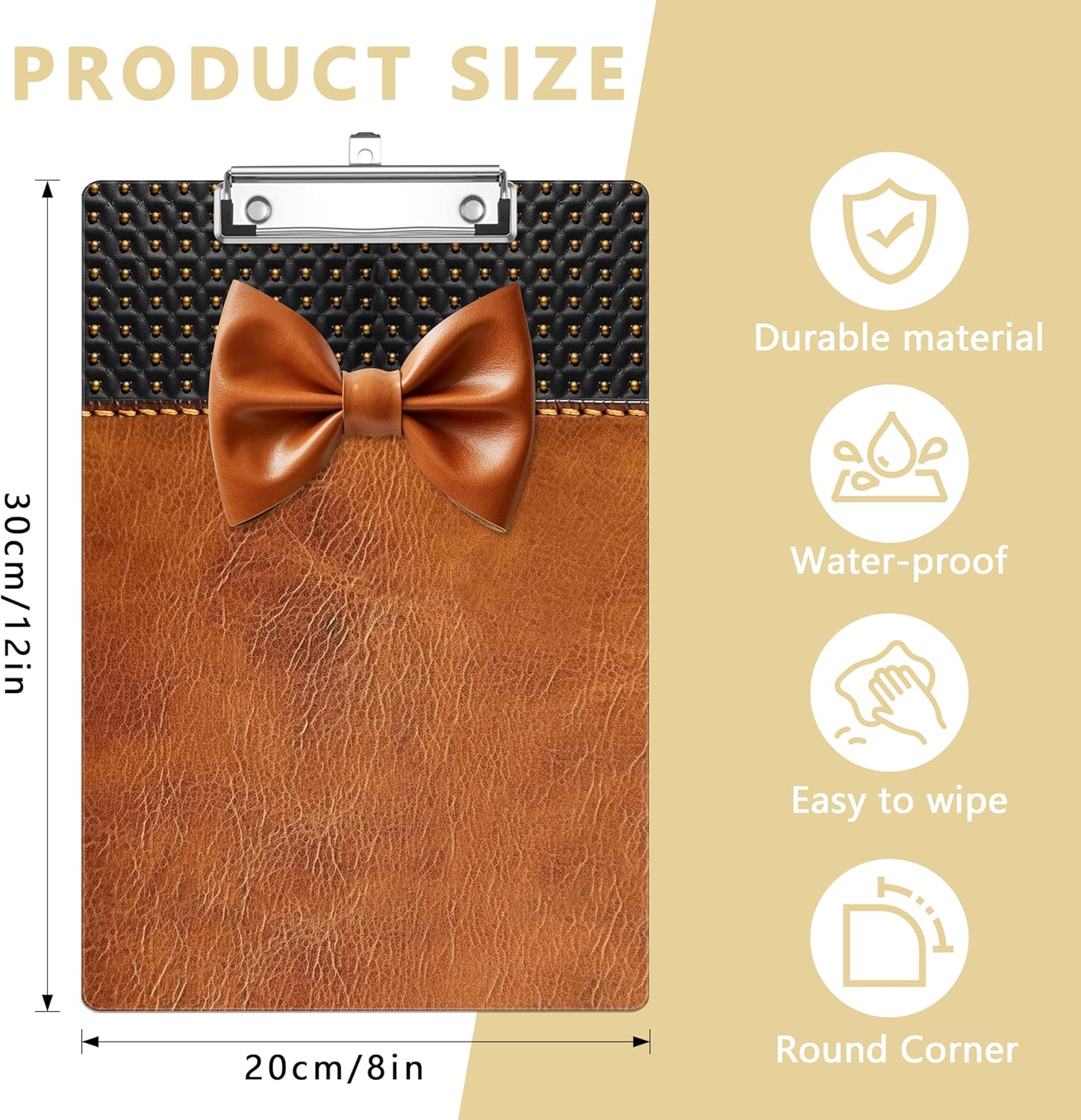 Leather Bow Plastic Clipboards,Decorative Plastic Acrylic Clipboard for Teacher Social Worker Students Office Supplies 8 * 12