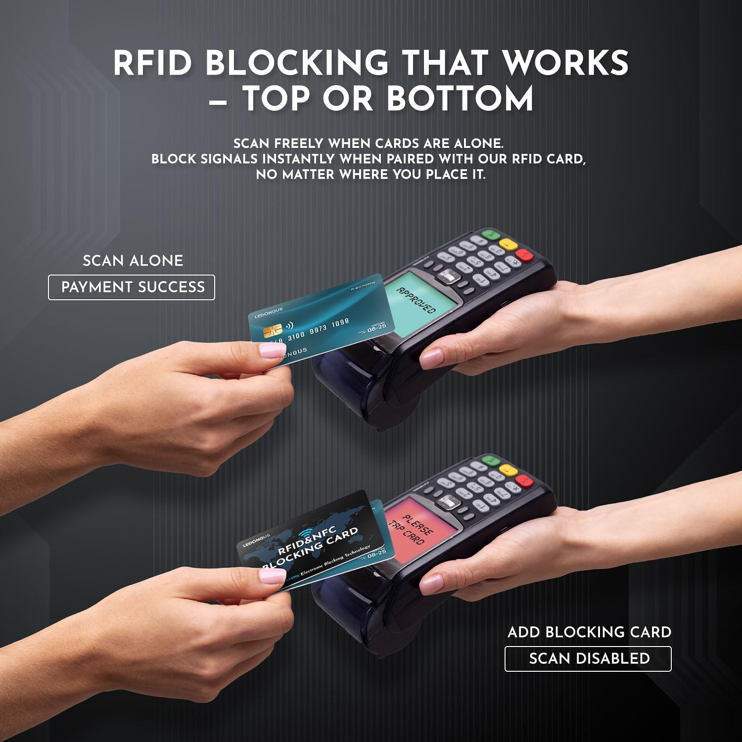 - Ultimate Wallet Protection Instantly protect your entire wallet from contactless RFID and NFC theft (electronic pickpocketing) with just one ultra-thin blocking card. No battery or setup needed – just slide it in.