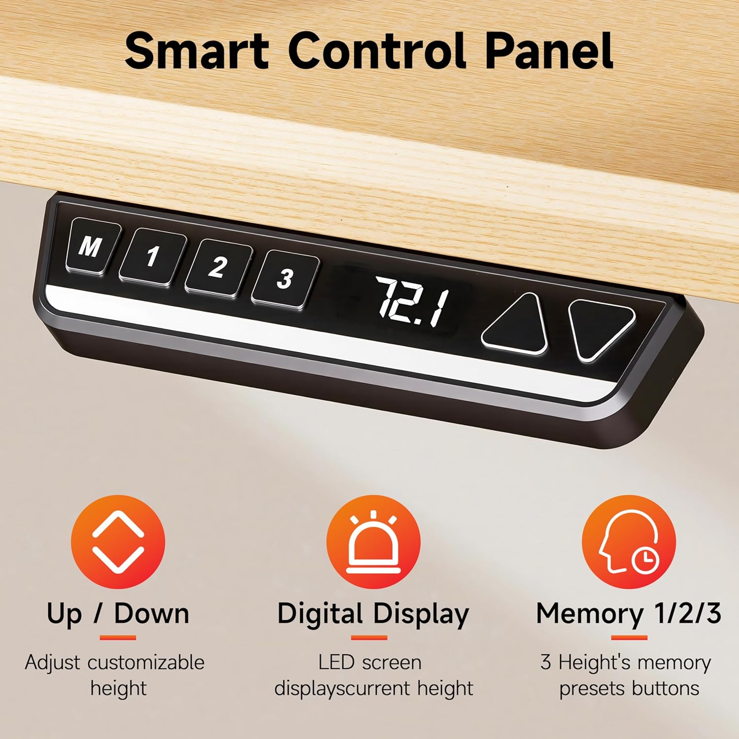 - 【Smart Operation Design】The raising home office desk legs feature an intuitive control panel for quick height adjustment with 3 memory presets to save your favorite height settings. The electric table legs operate at a quiet 48 dB to ensure a peaceful environment without distraction