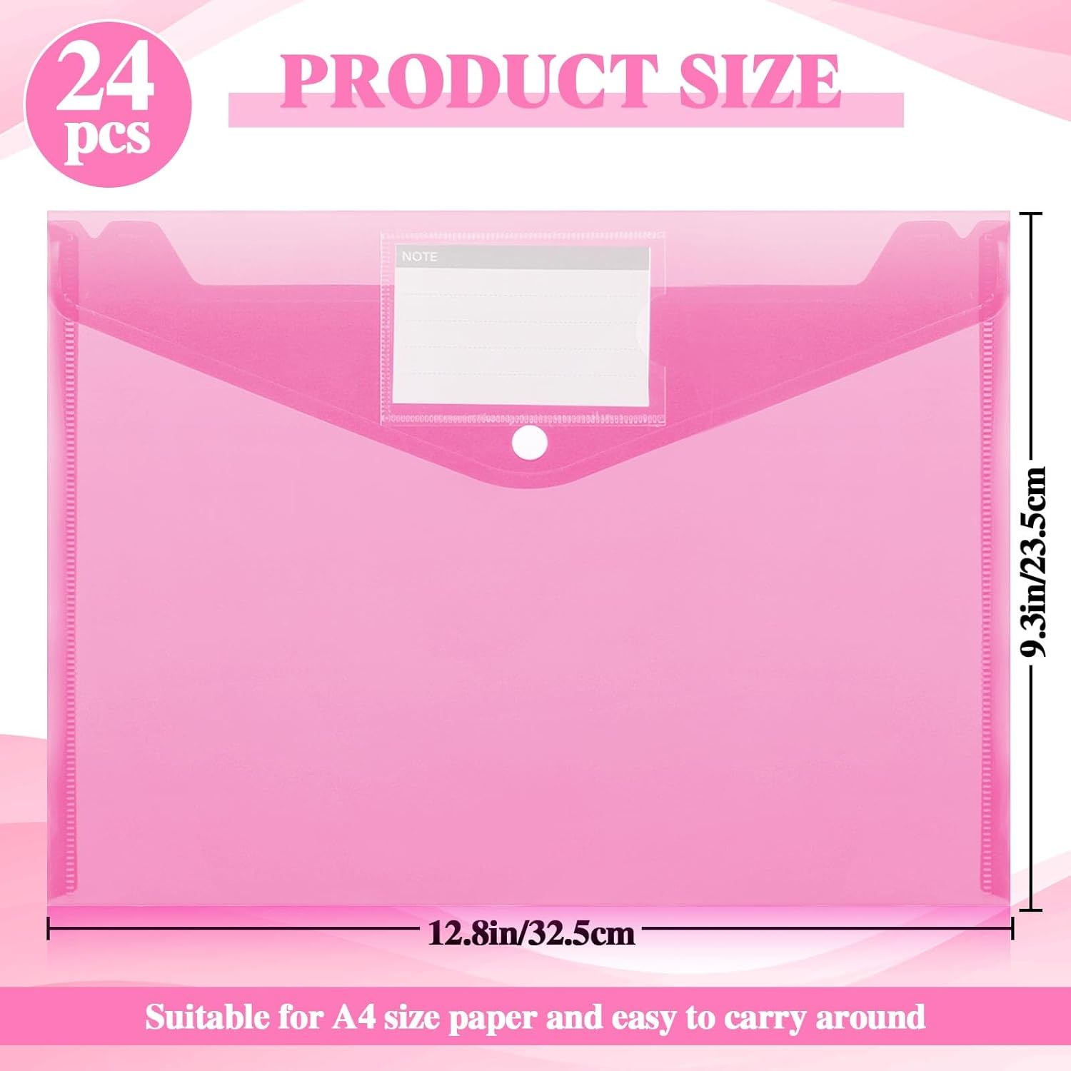 - Size and Color: our plastic envelopes measure about 12.8 x 9.3 inches/ 32.5 x 23.5 cm, providing ample space to store your documents, each set comes with 24 clear plastic folders, making them easy to carry while also adding a touch of style to your organizational needs, ideal for use in schools, offices, and during travel or business trips