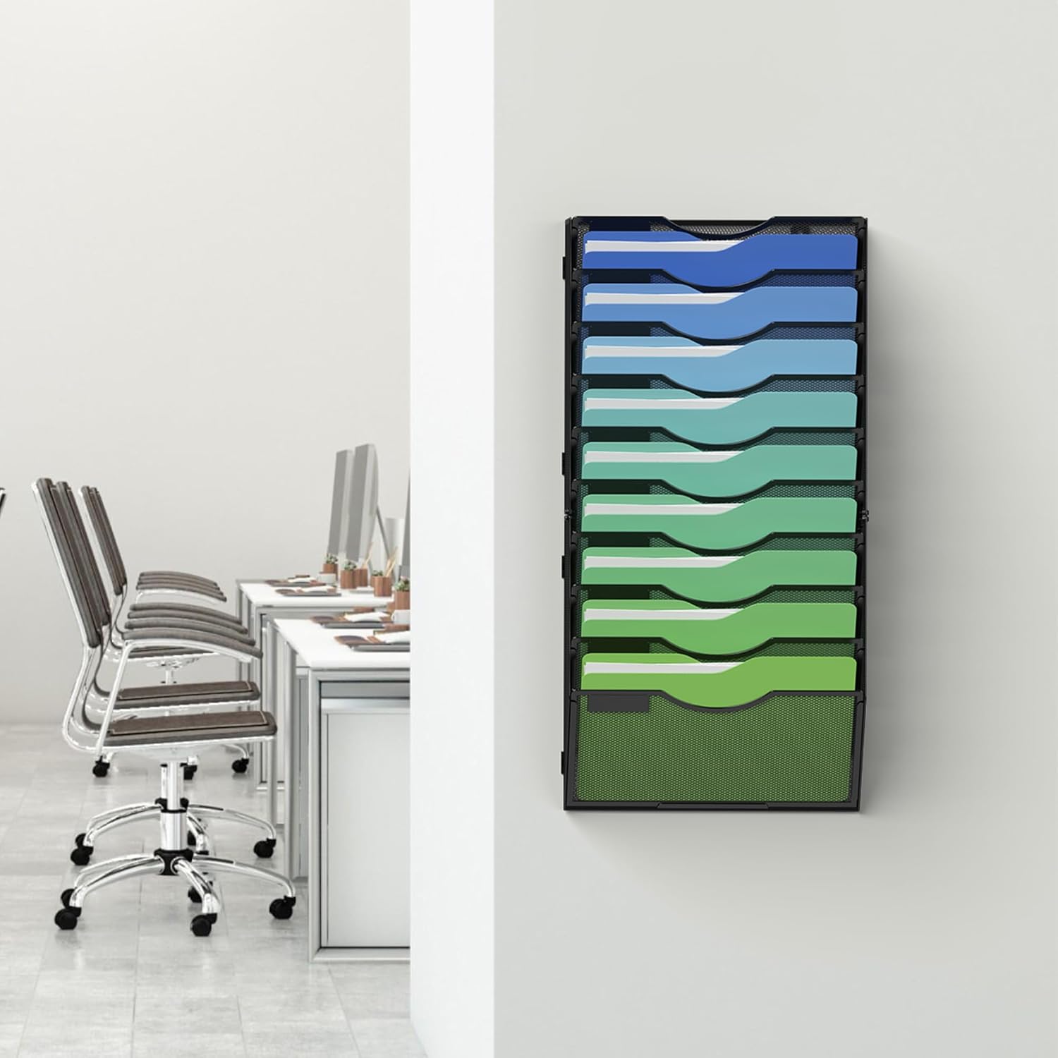 Kuntine.B Wall File Organizer Office Hanging Magazine Holder Wall File Organizer for Office Home (Black, 10 Tier)