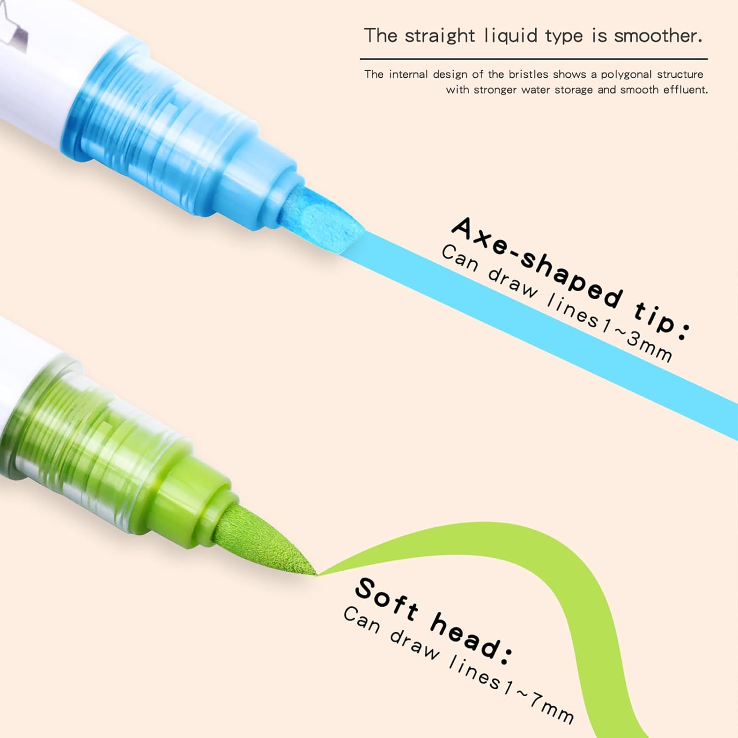 - Polygon Inner Structure: The unique brush core design maximizes ink capacity and maintains steady output for longer use.