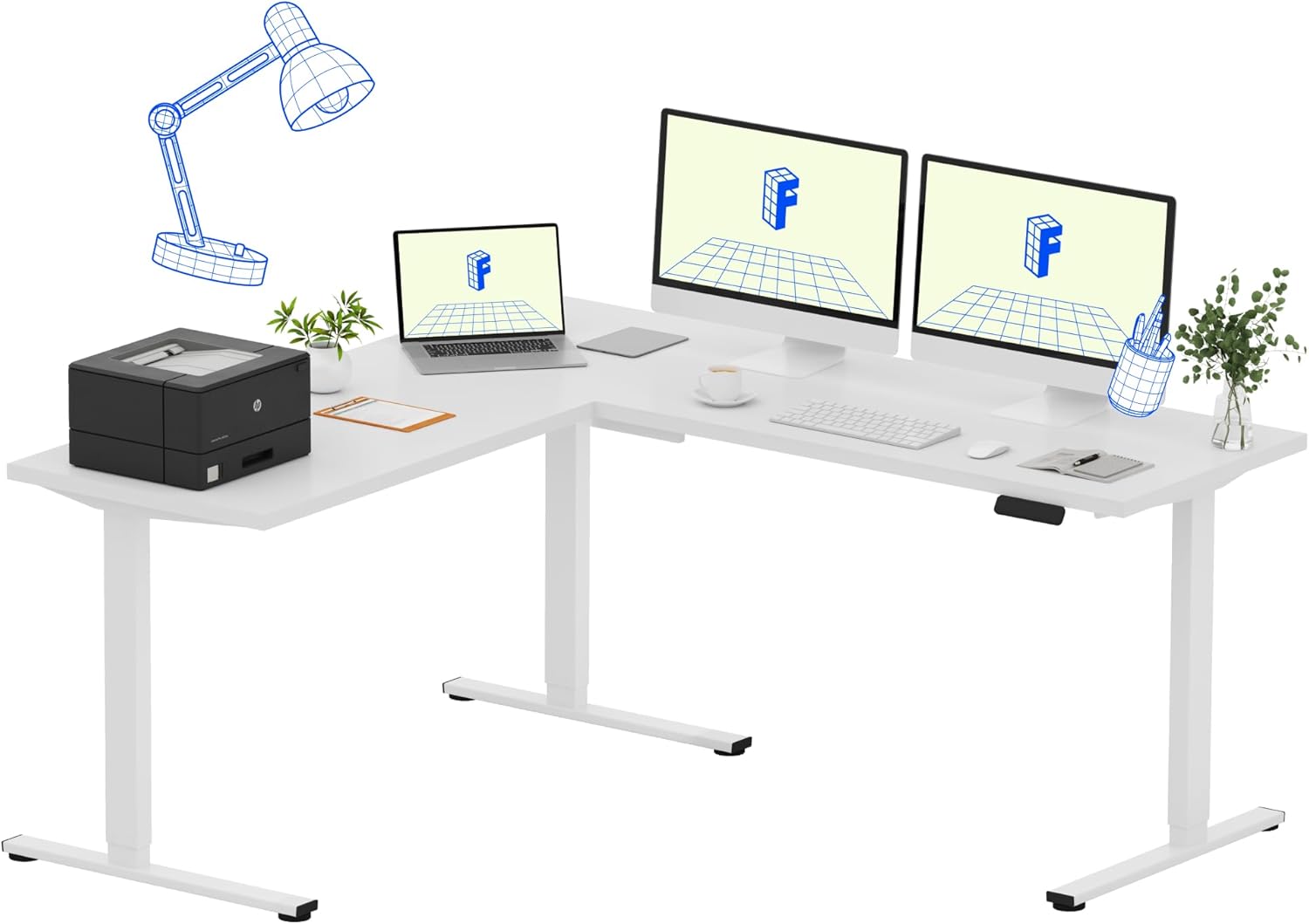 FLEXISPOT L Shaped Standing Desk, 71 x 63 Inch Electric Height Adjustable Corner Desk, Sit Stand Computer Workstation, Preset Controller, Home Office, White Frame with White Top