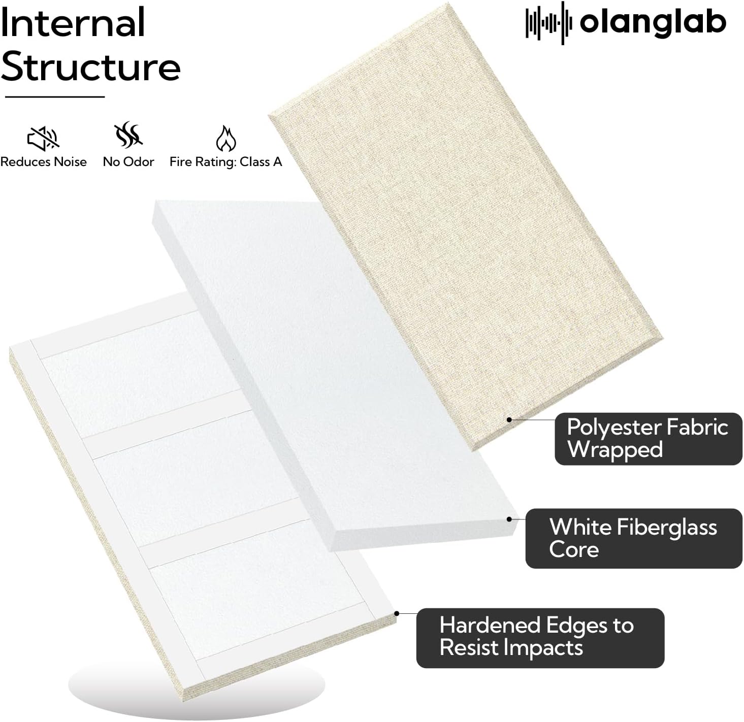 - Thick Fiberglass Core: Olanglab acoustic panels features high density fabric covering that allows sound to pass through and be absorbed by the dense White fiberglass inside.