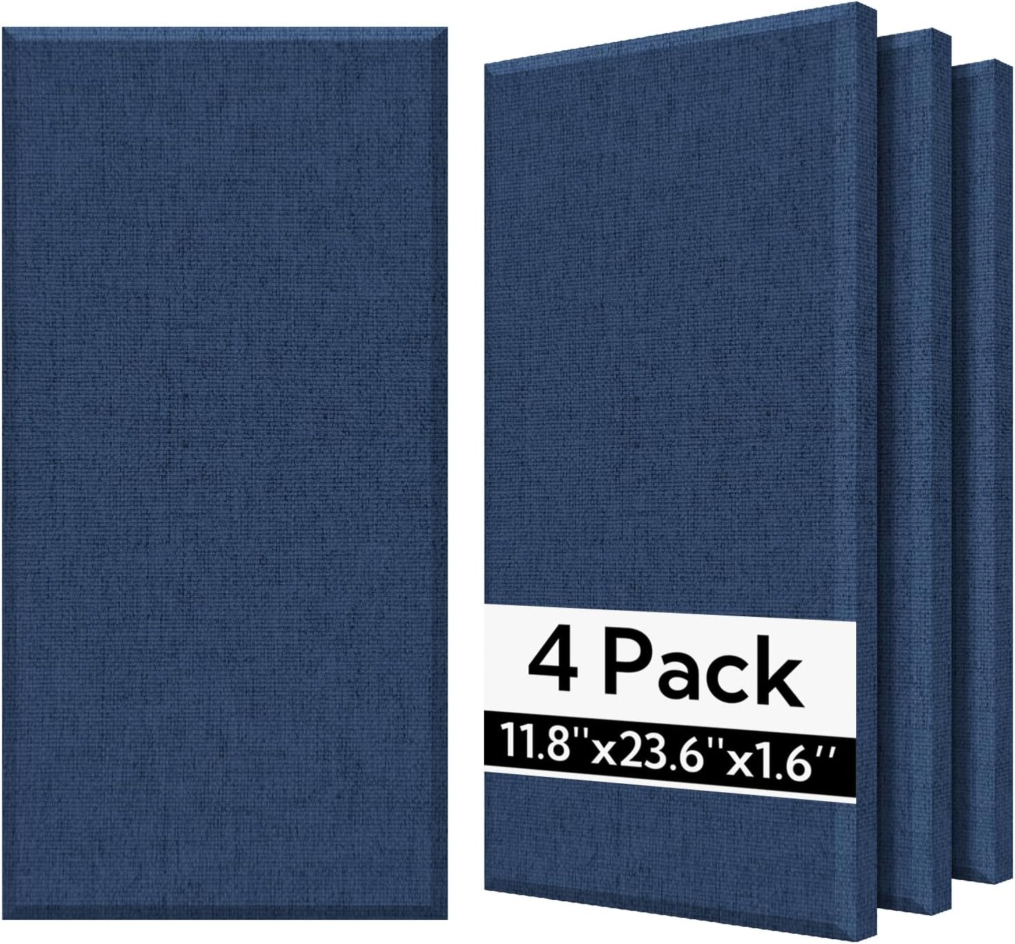 Olanglab Fiberglass Acoustic Wall Panels 4 Pack, 11.8'' x 23.6'' Sound Panels, Fabric Wrapped Sound Proof Panels for Walls (Navy)