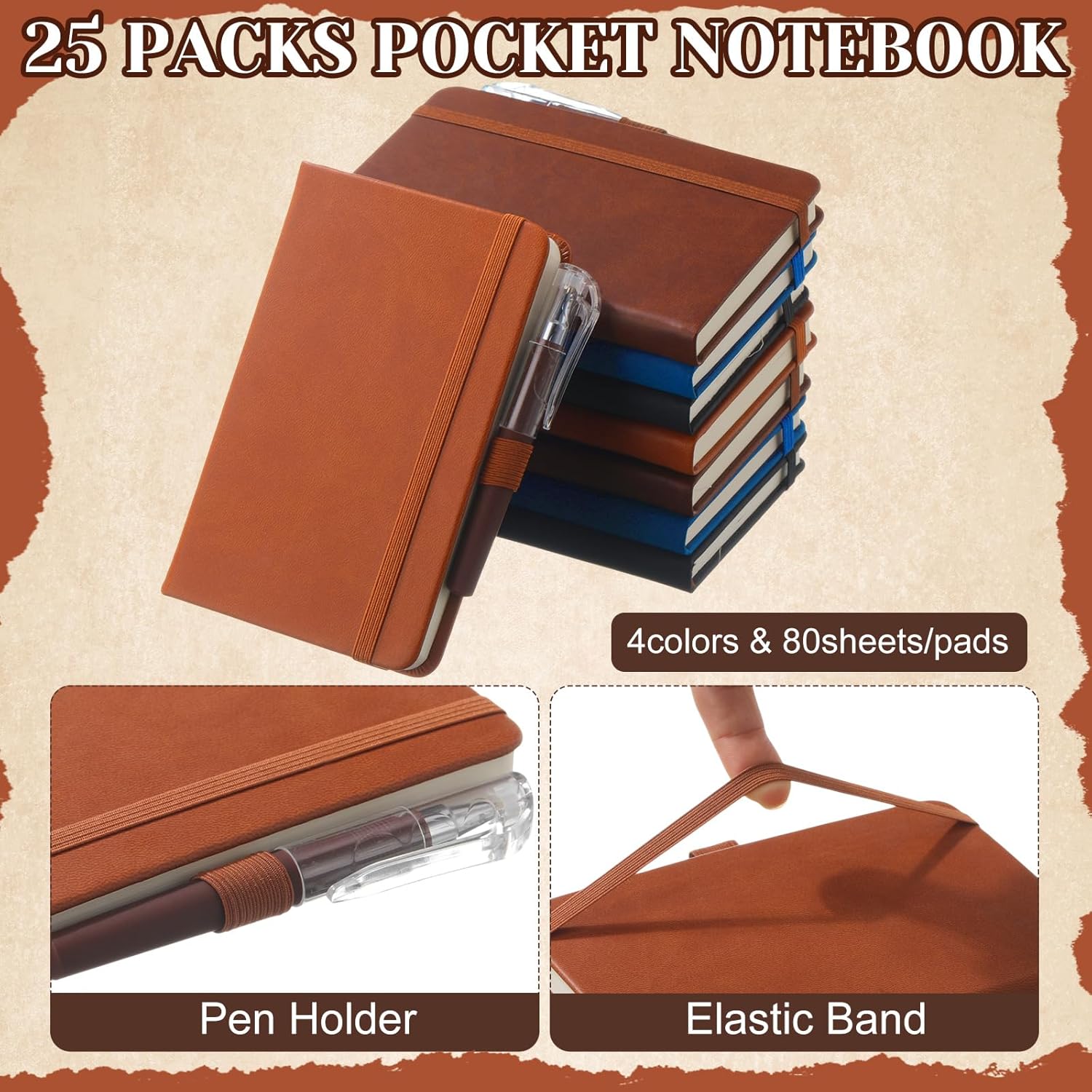 25 Pack Pocket Small Notebook Journals with Pen 5.6'' x 3.7'' Mini Journaling Notepads A6 Ruled Journals Hardcover Lined Notebook Bulk with Pen Holder for Office School Memo(Vintage Colors)