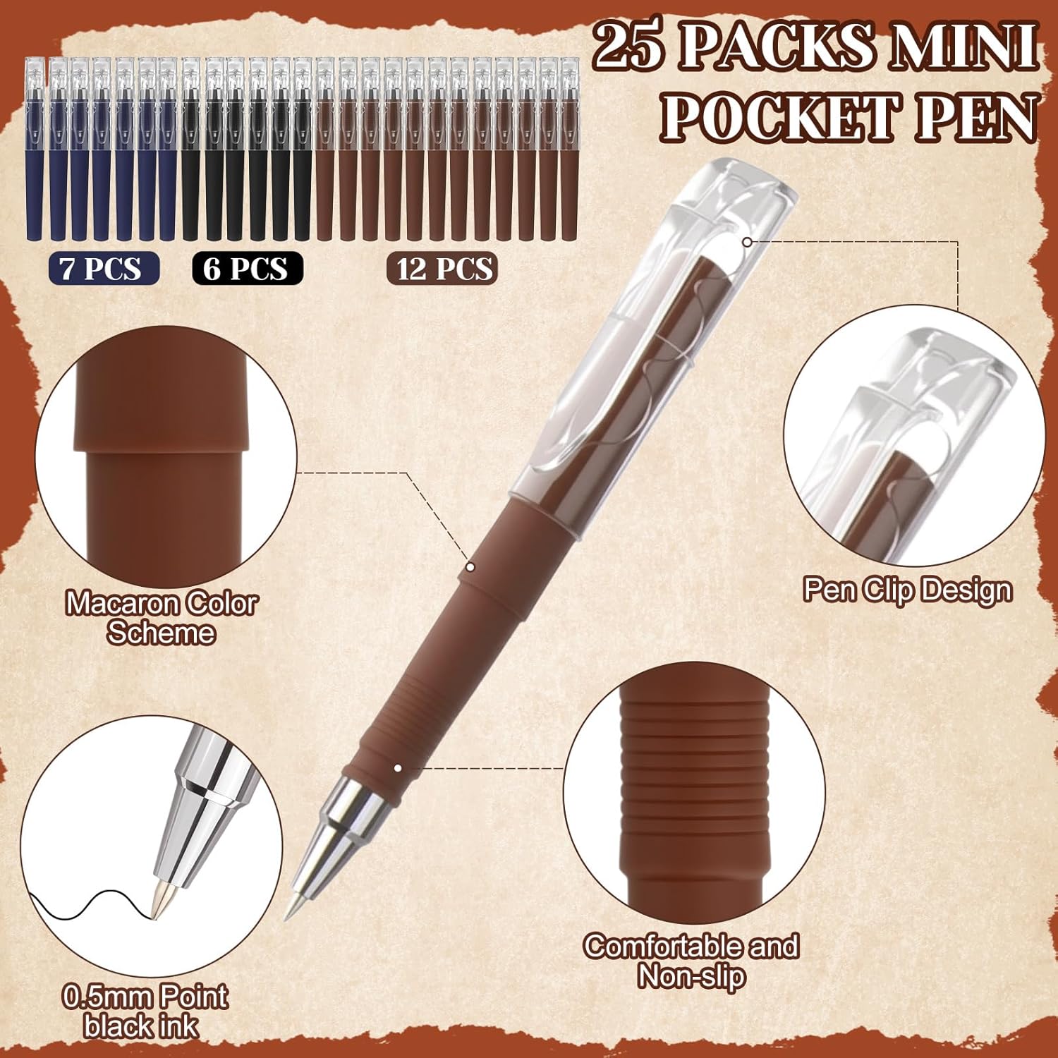 - Sufficient Quantity: you will receive 25 hardcover pocket notebook(dark brown/light brown/black 6 each and 7 dark blue ) and 25 mini pens(6 black, 7 navy blue, 12 brown), enough for your personal needs or plenty to share with others; Each mini notebook is crafted with a pen holder, making it convenient and efficient to store your pen within easy reach at all times, you can use it as soon as you receive it