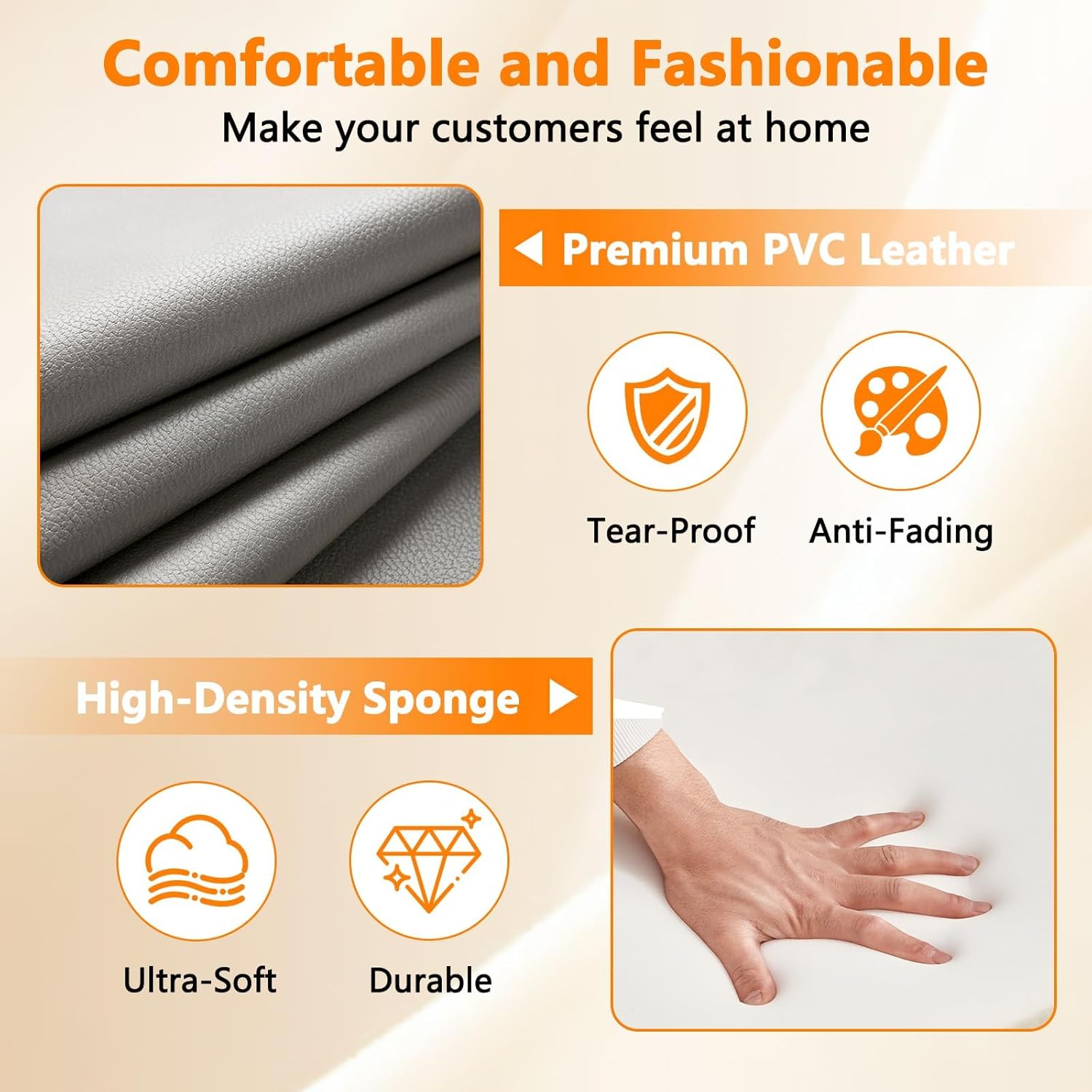 - COMFORT IS KEY: Featuring comfortable foam filling back and seat cushion, together with PVC leather upholstery padded armrest that provides an excellent sitting experience.