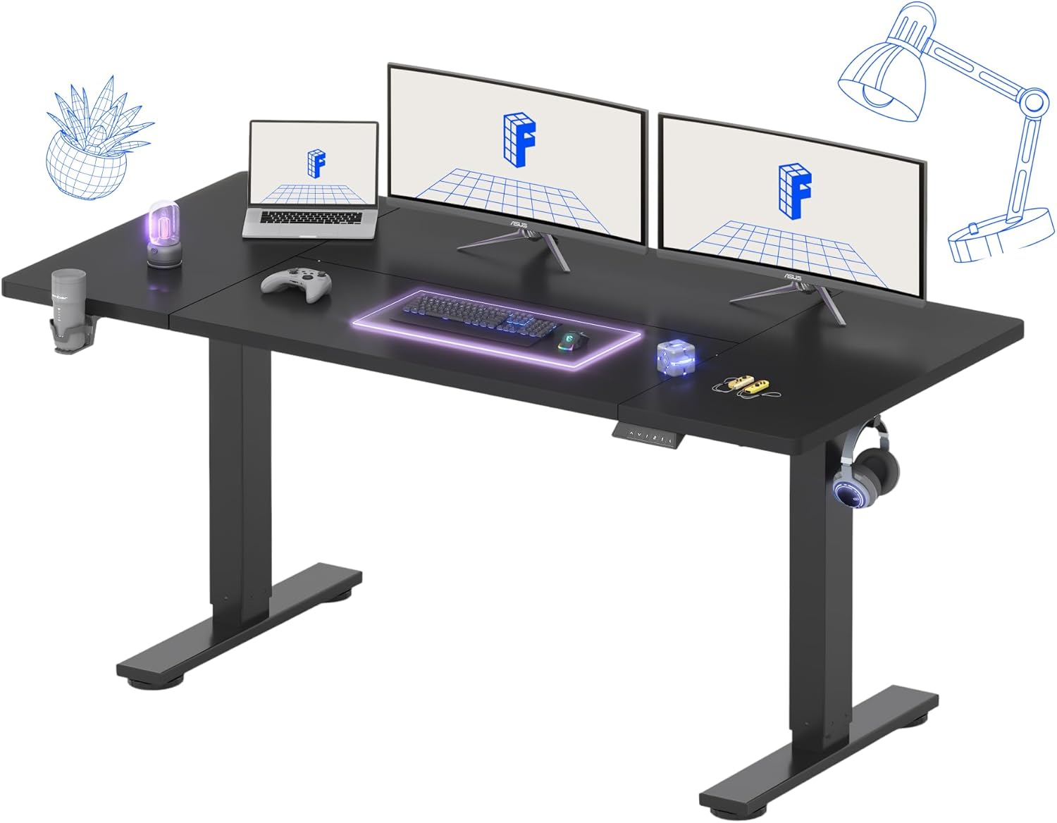 FLEXISPOT 63 x 32 Inch Large Standing Desk, Stand Up Desk with Splice Board, Rising Desks for Home Office, Office Desk with Cup Holder and Headphone Hook (Black Frame + Black Top, 2 Packages)