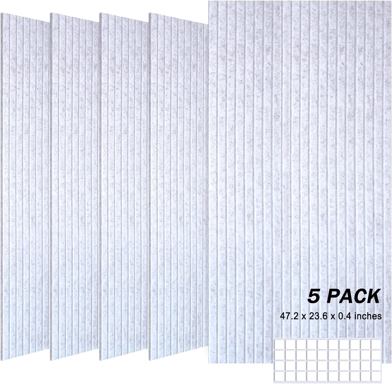 5 Pack Acoustic Panels, 48" X 24" X 0.4" Decorative Sound Proof Felt Panels, Sound Dampening Panels, Self-Adhesive Sound proof panels for walls, Creative Slotting Design. (Silver Grey, 5 Pack)