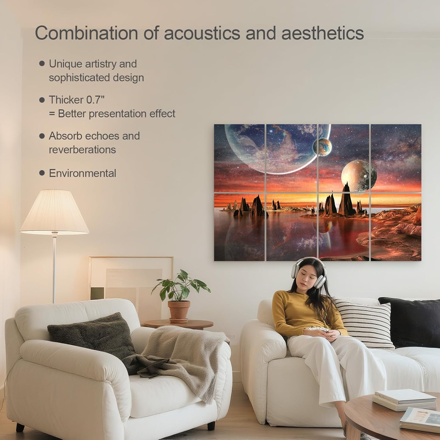 UMIACOUSTICS 8 Pcs 0.7Inch Thick Art Acoustic Panels, Total 47.2” x 31.5” Decorative Acoustical Wall Panels, Sound Absorbing Art Panels for Home, Office, Hotel, Stars Shine-Brightly