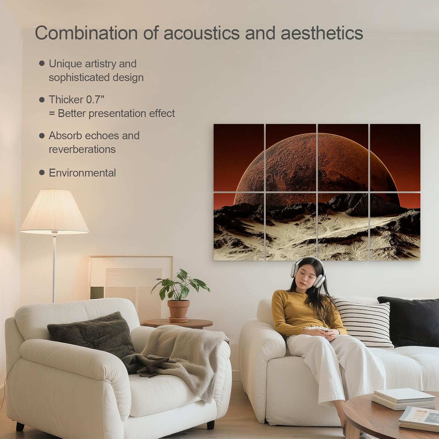 UMIACOUSTICS 8 Pcs 0.7Inch Thick Art Acoustic Panels, Total 47.2” x 31.5” Decorative Acoustical Wall Panels, Sound Absorbing Art Panels for Home, Office, Hotel, Recording Studio, Phobos Rock
