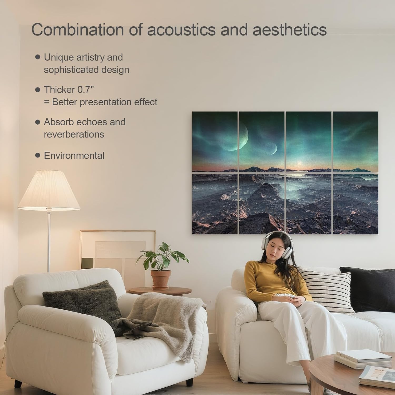 UMIACOUSTICS 8 Pcs 0.7Inch Thick Art Acoustic Panels, Total 47.2” x 31.5” Decorative Acoustical Wall Panels, Sound Absorbing Art Panels for Home, Office, Hotel, Recording Studio, Stars Daybreak