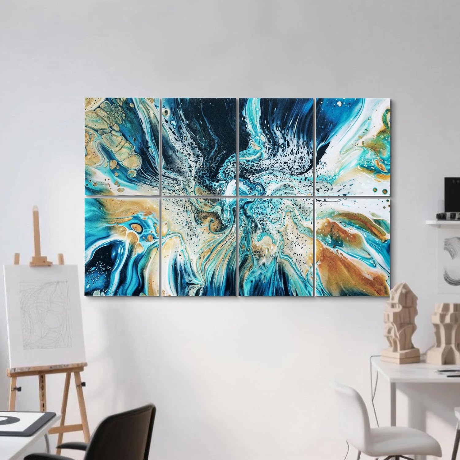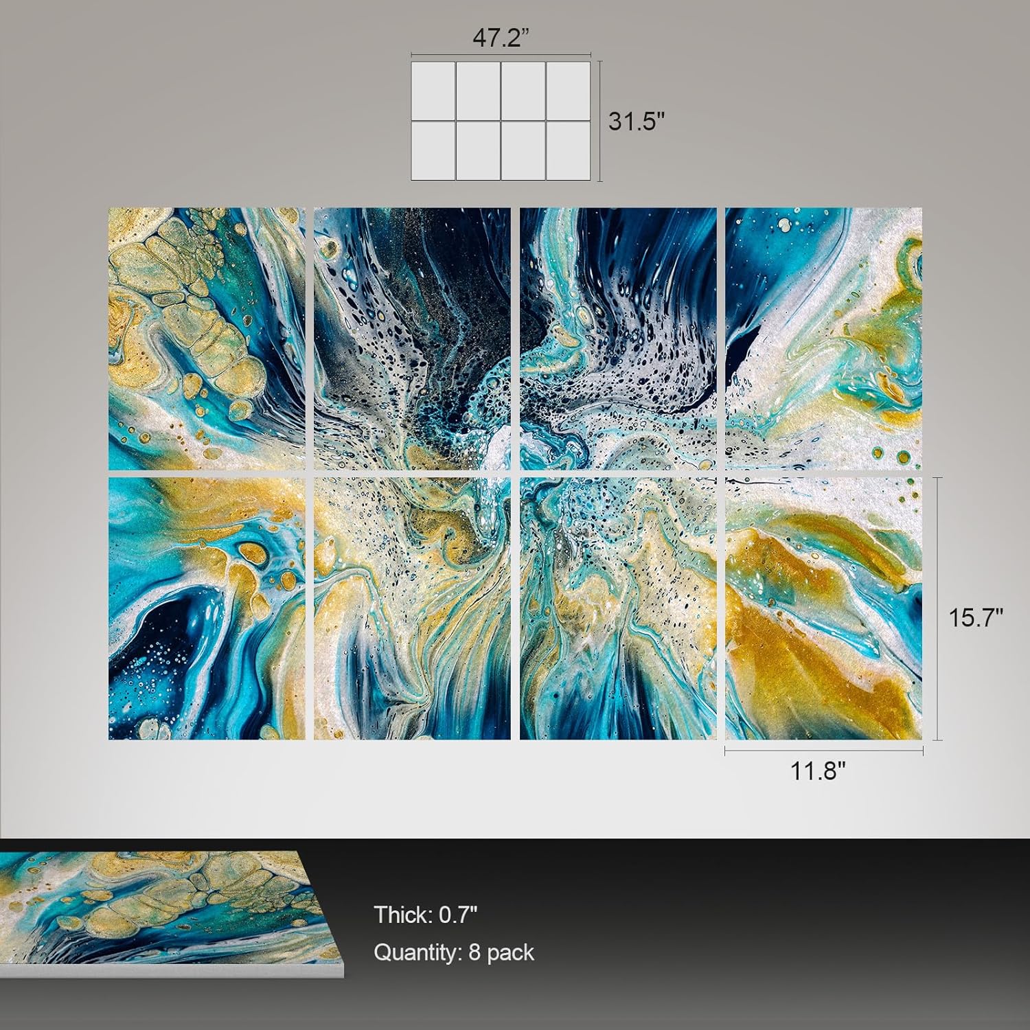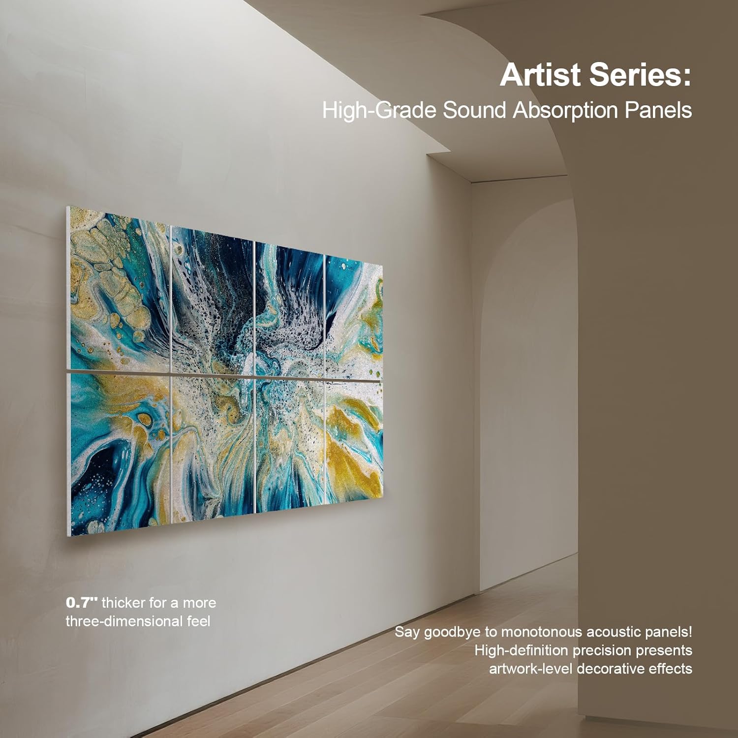 UMIACOUSTICS 8 Pcs 0.7Inch Thick Art Acoustic Panels, Total 47.2” x 31.5” Decorative Sound Absorbing Art Panels, Acoustical Wall Panels for Home, Office, Hotel, Lakeland Blue-Ripple
