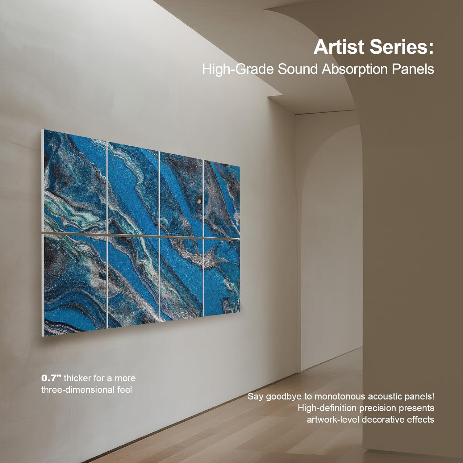 UMIACOUSTICS 8 Pcs 0.7Inch Thick Art Acoustic Panels, Total 47.2” x 31.5” Decorative Sound Absorbing Art Panels, Acoustical Wall Panels for Home, Office, Hotel, Dark Night Blue
