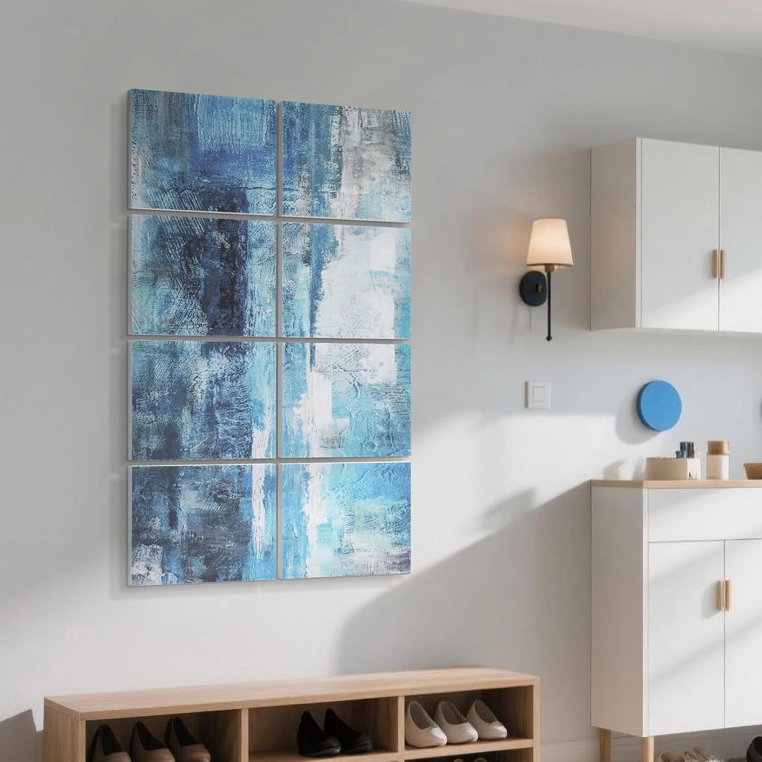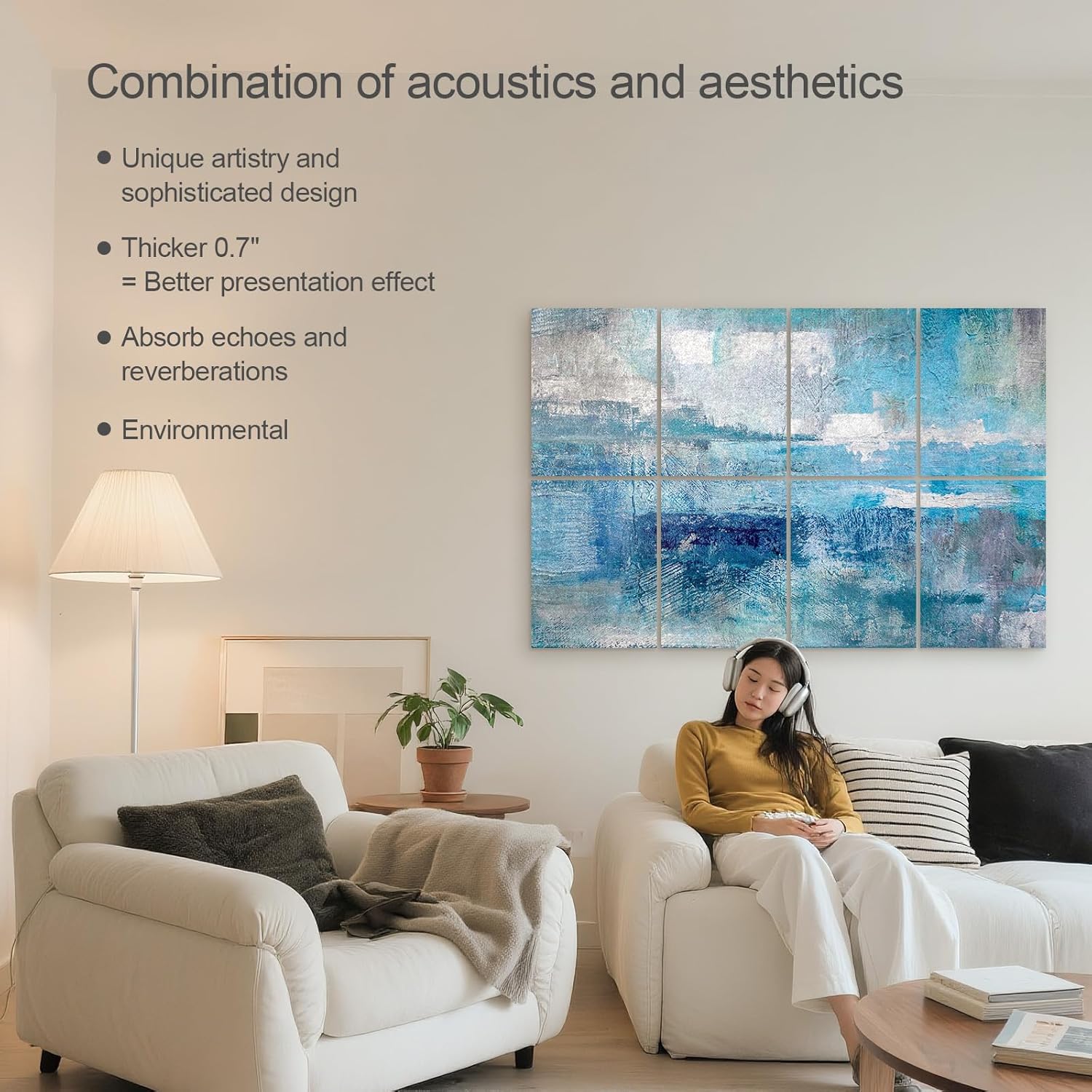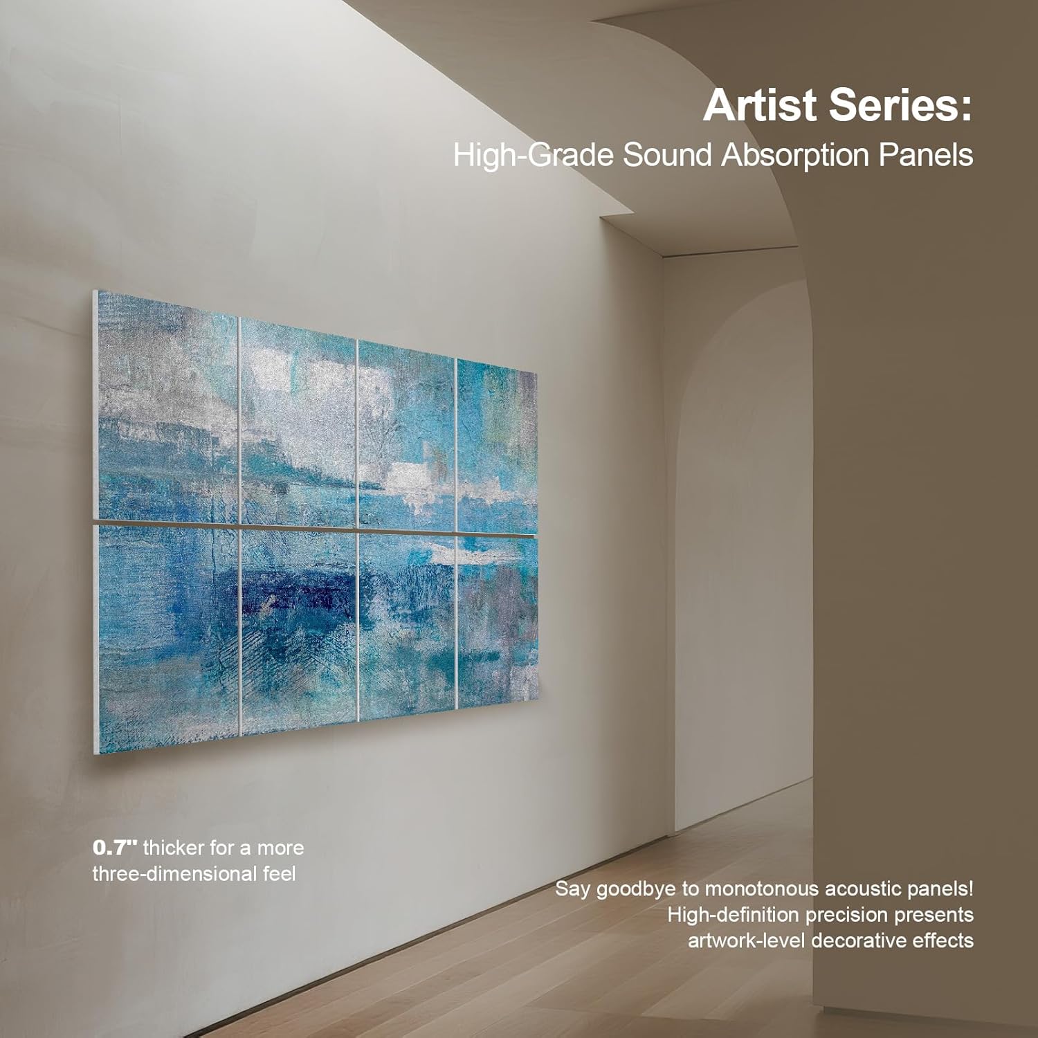 UMIACOUSTICS 8 Pcs 0.7Inch Thick Art Acoustic Panels, Total 47.2” x 31.5” Decorative Sound Absorbing Art Panels, Acoustical Wall Panels for Home, Office, Hotel, Snow-Blue Dyeing-Fog