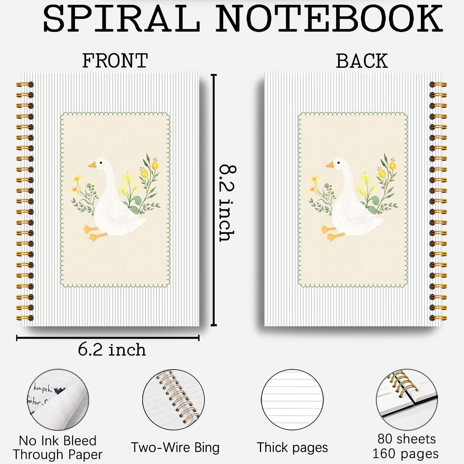 Guymn Cottage Core Floral Goose Notebook, Sage Green Vintage Goose Journal for Kids Girls, Geese Animal Lover Gifts Hardcover Spiral Notebooks Journals 5.5x8.3 Inch