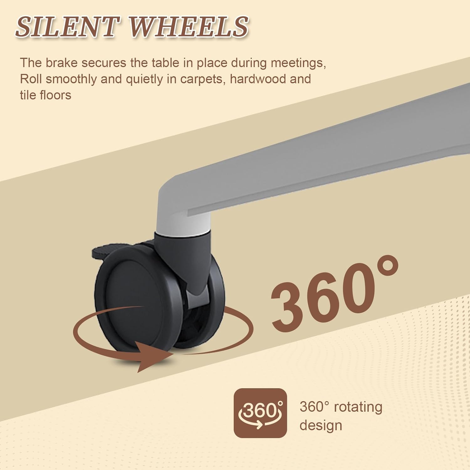 - 【Noiseless Wheels】Our flip top meeting table is equipped with 360° rotated casters which is made of Polyurethane material. The wheel of modern folding training tables is noiseless and can move smoothly. Also, our wheels of rolling meeting table has brake which can make your table stay in place during meeting.