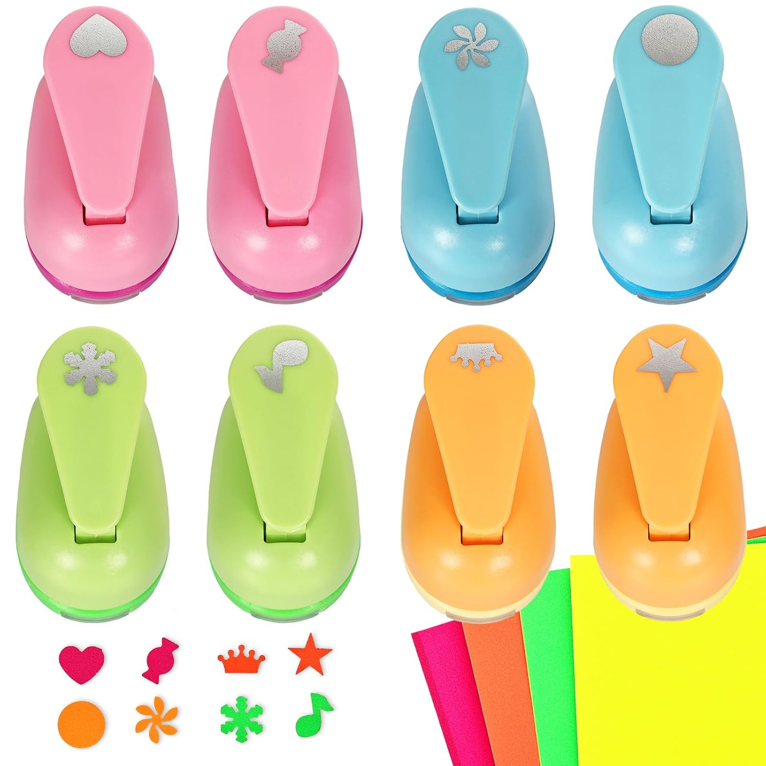Craft Punches 8 Pack with 4 Sticker Paper, 0.6inch Hole Punch Shapes Medium Paper Punch Shapes, Craft Hole Punch for DIY Scrapbooking Nail Art Craft Punchers Supplies