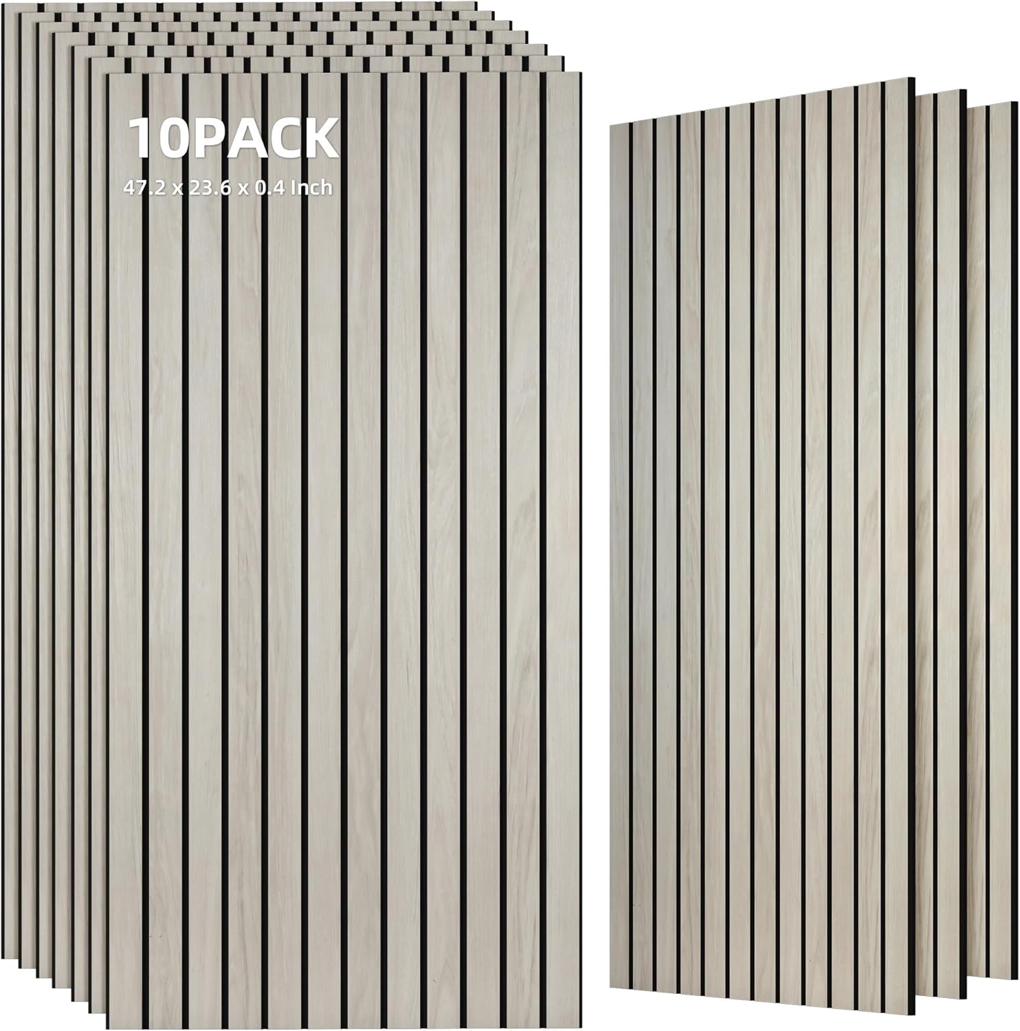 TO-TH Wood-Look Acoustic Wall Panels, 10 Pack 47.2” x 23.6” Acoustic Panels, Decorative Sound Absorbers Sound Dampening Panels for Home, Office, Basement, Natural Oak