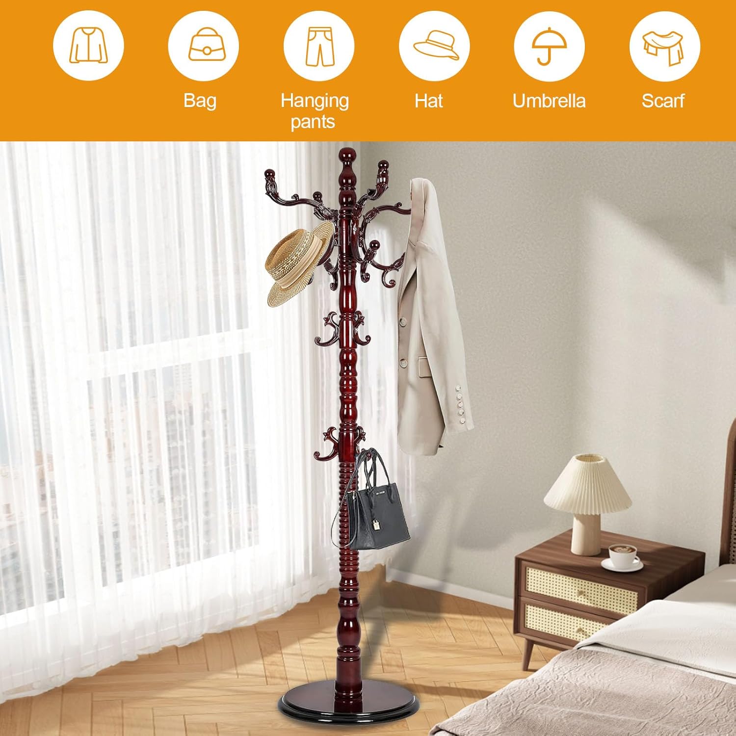 - AAAAA Grade Birch wood Material: This coat rack is made of eco-friendly paint and natural birch for a sturdy, vintage-inspired elegance. The solid, thickened round base provides excellent stability. The freestanding coat rack can hold up to 200 pounds, making it easy to hang multiple pieces of clothing without wobbling.
