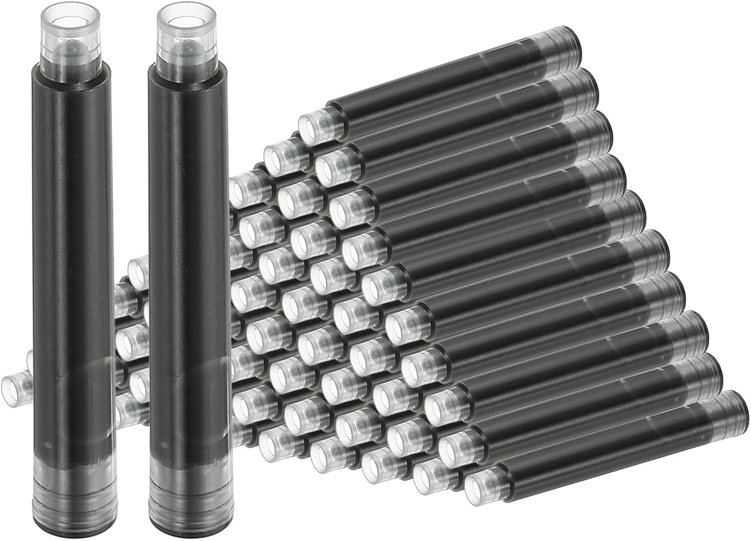 PATIKIL 60Pcs Fountain Pen Ink Cartridges, 3.4mm Bore Diameter Pen Ink Refill Standard International Refill Cartridges for Writing Business, Black