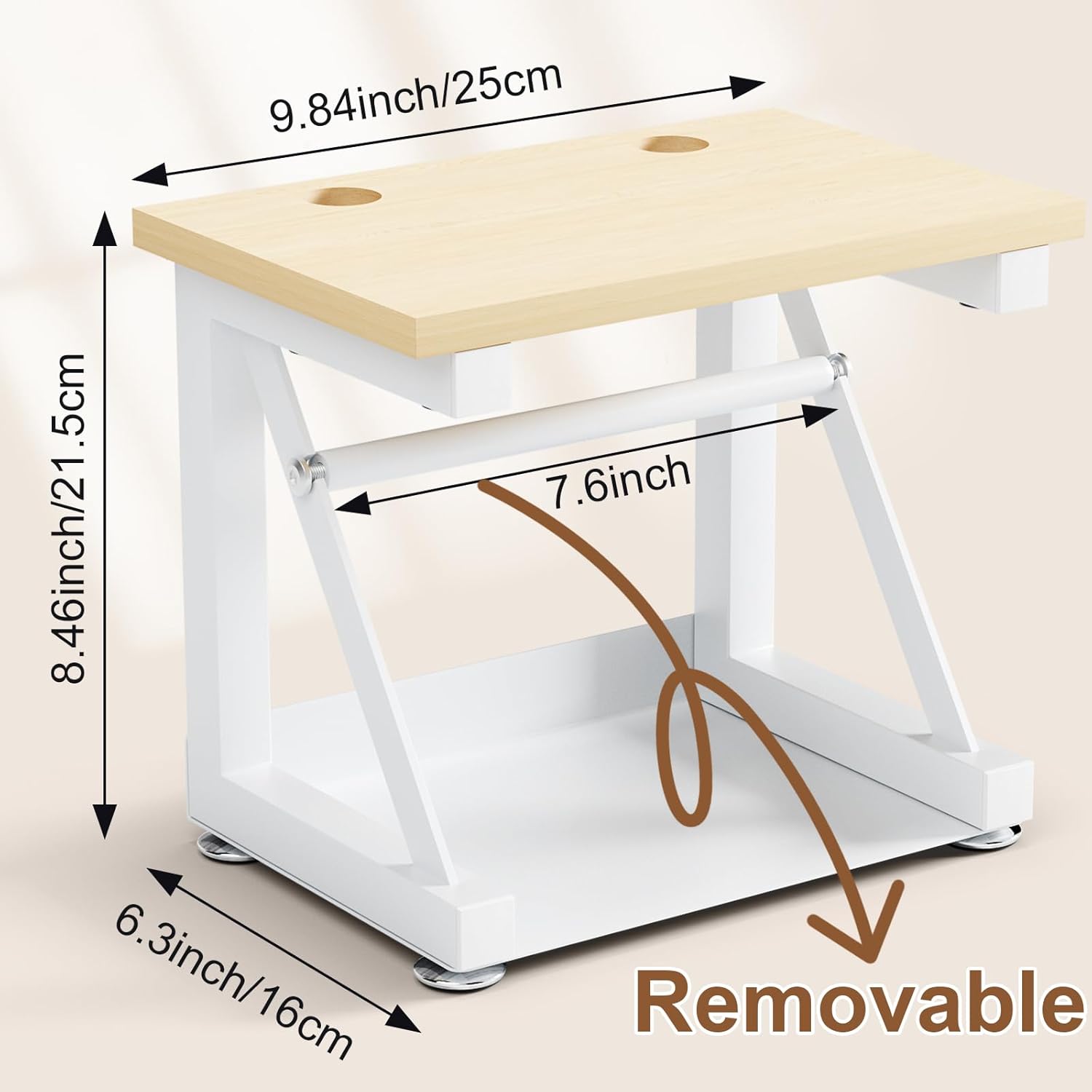 - 【Multi-functional Label Holders】This wooden label holder is a versatile accessory specifically designed for desktop thermal label printers. It combines the functions of storing label rolls and the printer. The bottom Tray offers extra space for office supplies, serving as a mini desktop storage station. Two extra wiring holes help you organize the wires and can be pasted as needed