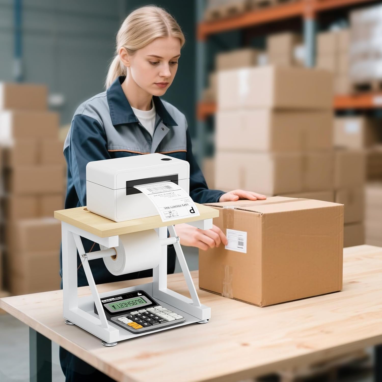 - 【Sturdy Construction】Our rollo label holder is constructed with matte black metal frame and high-quality wood, with better load bearing capacity, with anti slip foot pads at the bottom. The pole can be freely adjusted for tightness. Thermal printer stands providing you with a smooth printing label experience