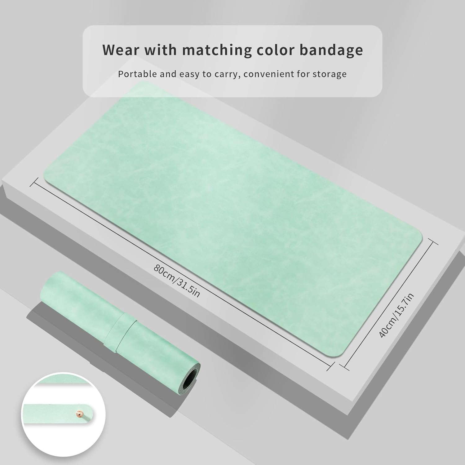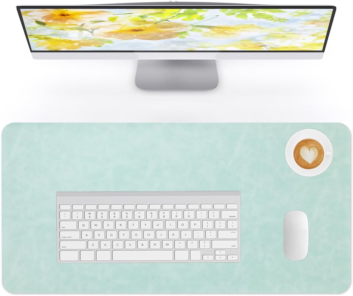 Crazy Horse Leather Desk Mat Large Mouse Pad Laptop Desk Pad Waterproof Non-Slip Table Blotter Desktop Writing Pad for Office and Home (Light Green, 60x35cm)