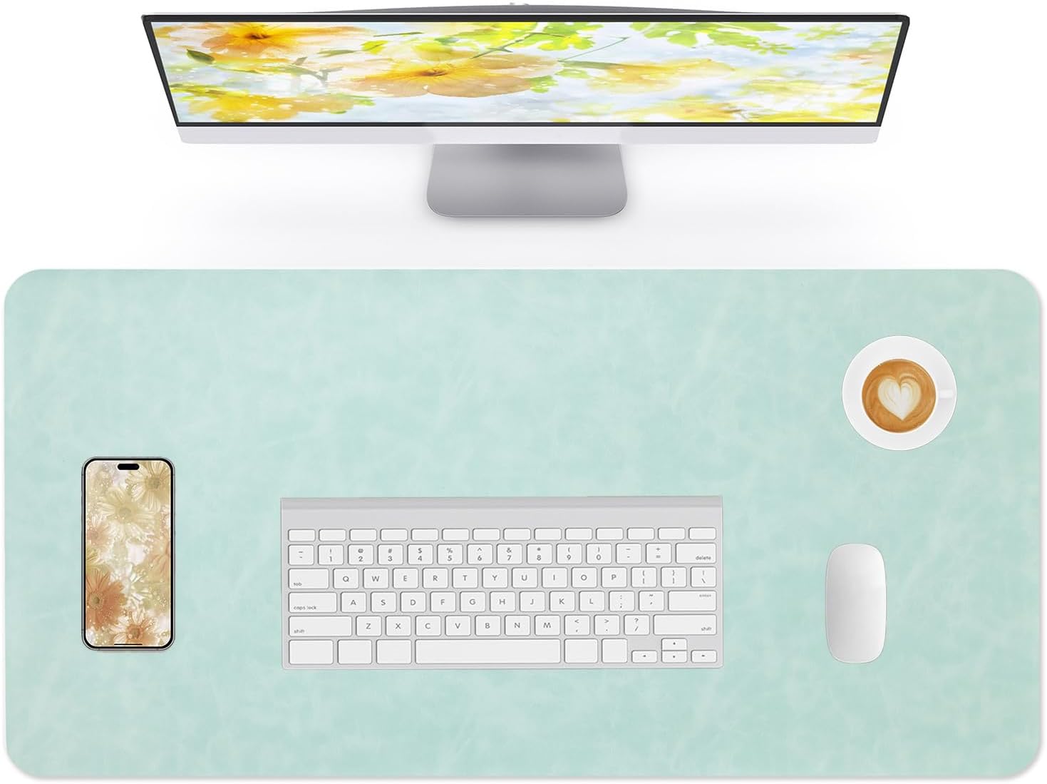 Crazy Horse Leather Desk Mat Large Mouse Pad Laptop Desk Pad Waterproof Non-Slip Table Blotter Desktop Writing Pad for Office and Home (Light Green, 90x43cm)