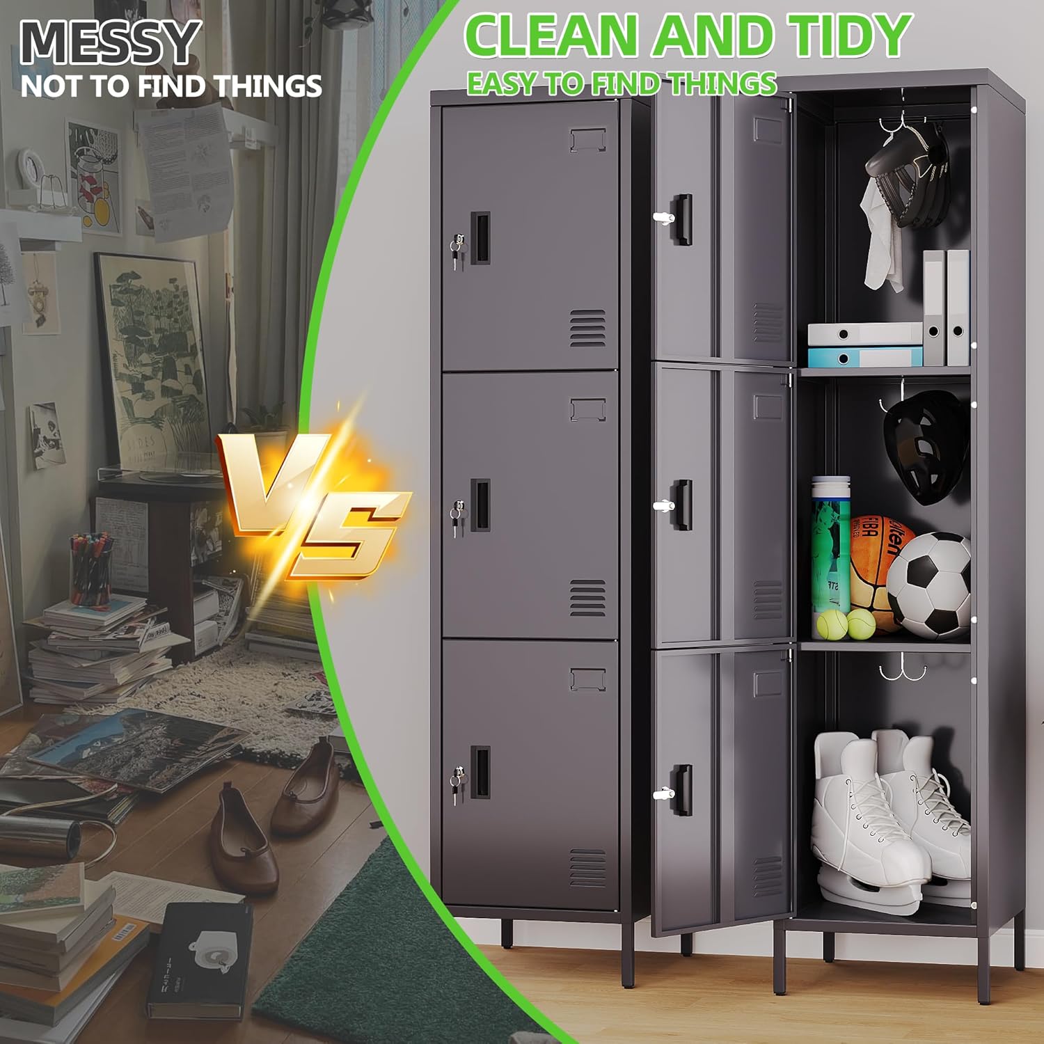 - 【Multipurpose Use】This lockable metal locker provides versatility and practicality for your storage needs. Perfect for Home,Gym,Garage,School,Office or anywhere you need safe storage space.