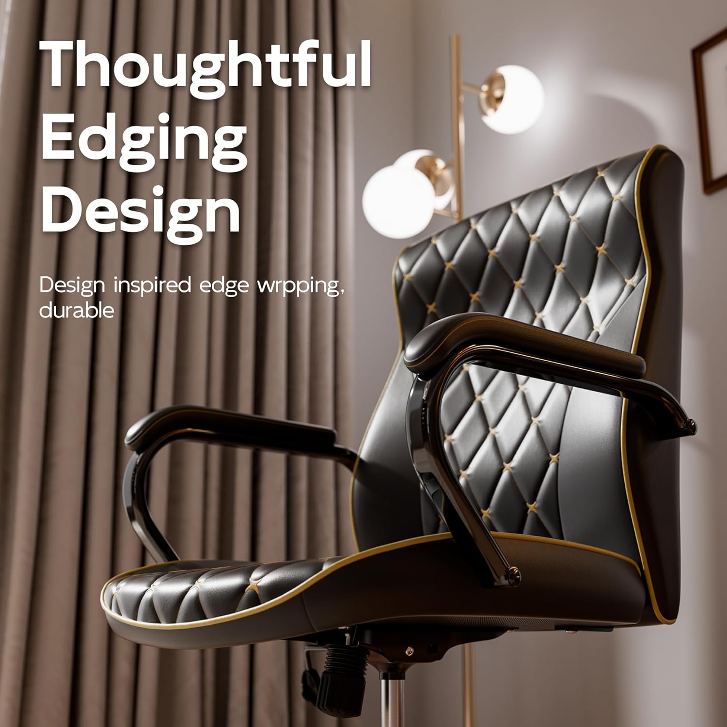 - Luxurious Diamond Quilted Design: The black office chair features an exquisite diamond stitched quilted design that enhances the visual appeal of this leather office chair, adding a touch of elegance to any home or executive office space
