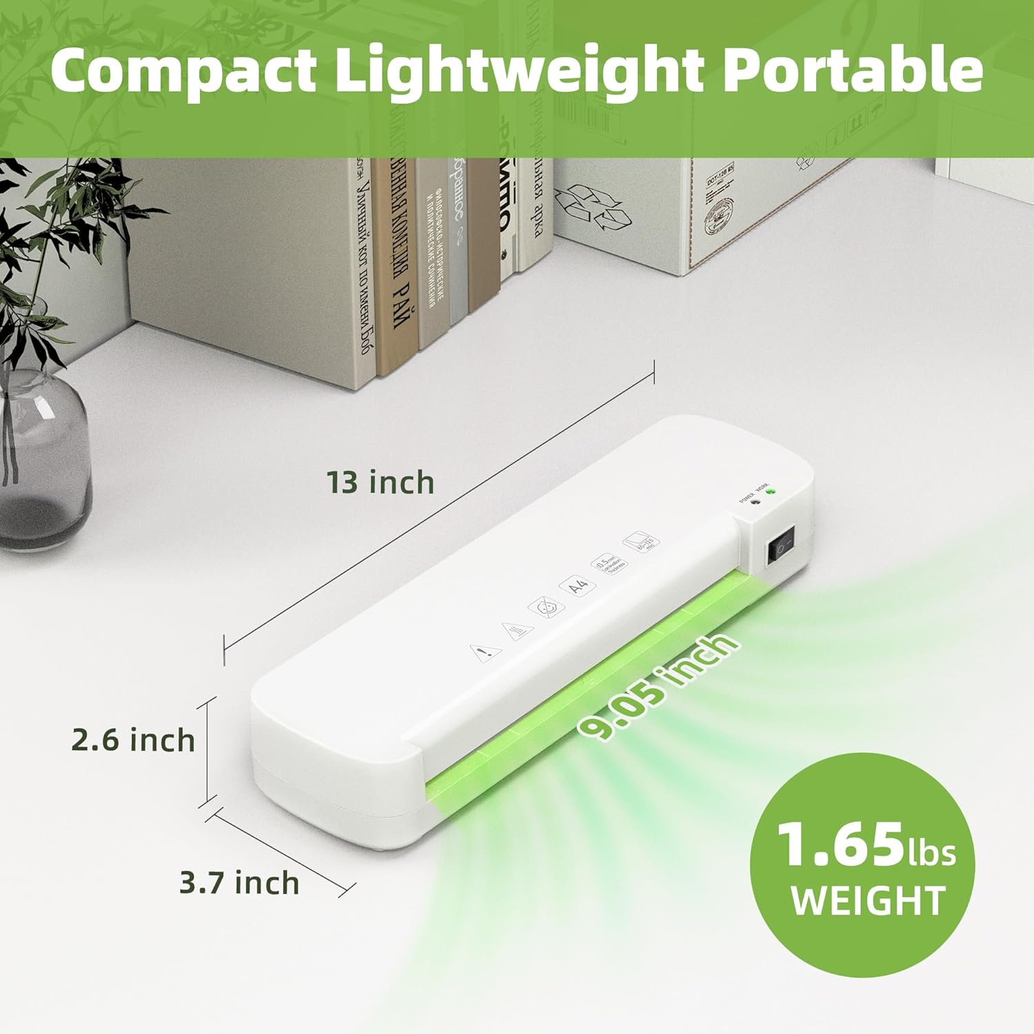 - 【Compact & Portable】At just 9 inches wide and lightweight, our laminator fits anywhere—on your desk, in a classroom, or even in a travel bag. Take it to work, school, or craft sessions without hassle.