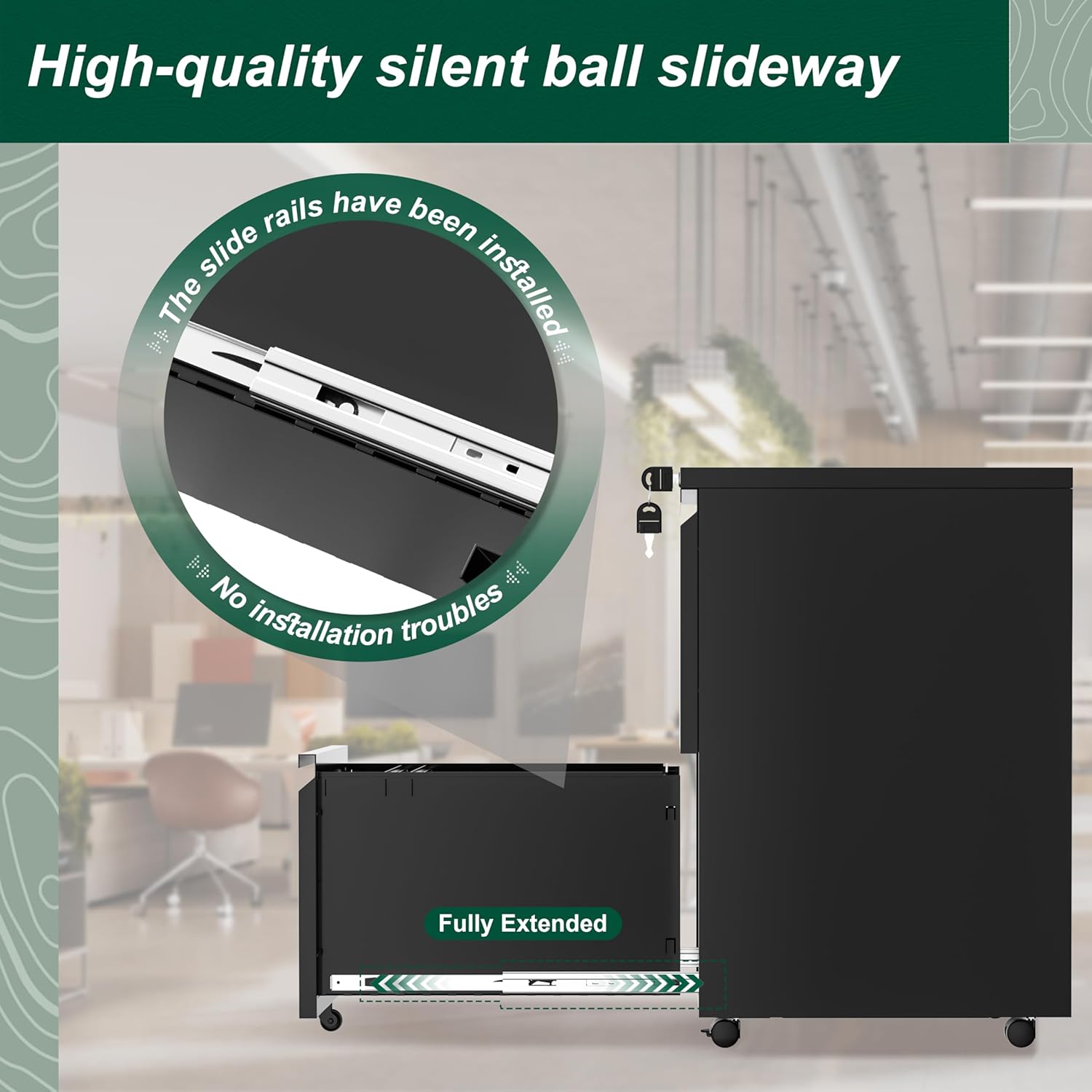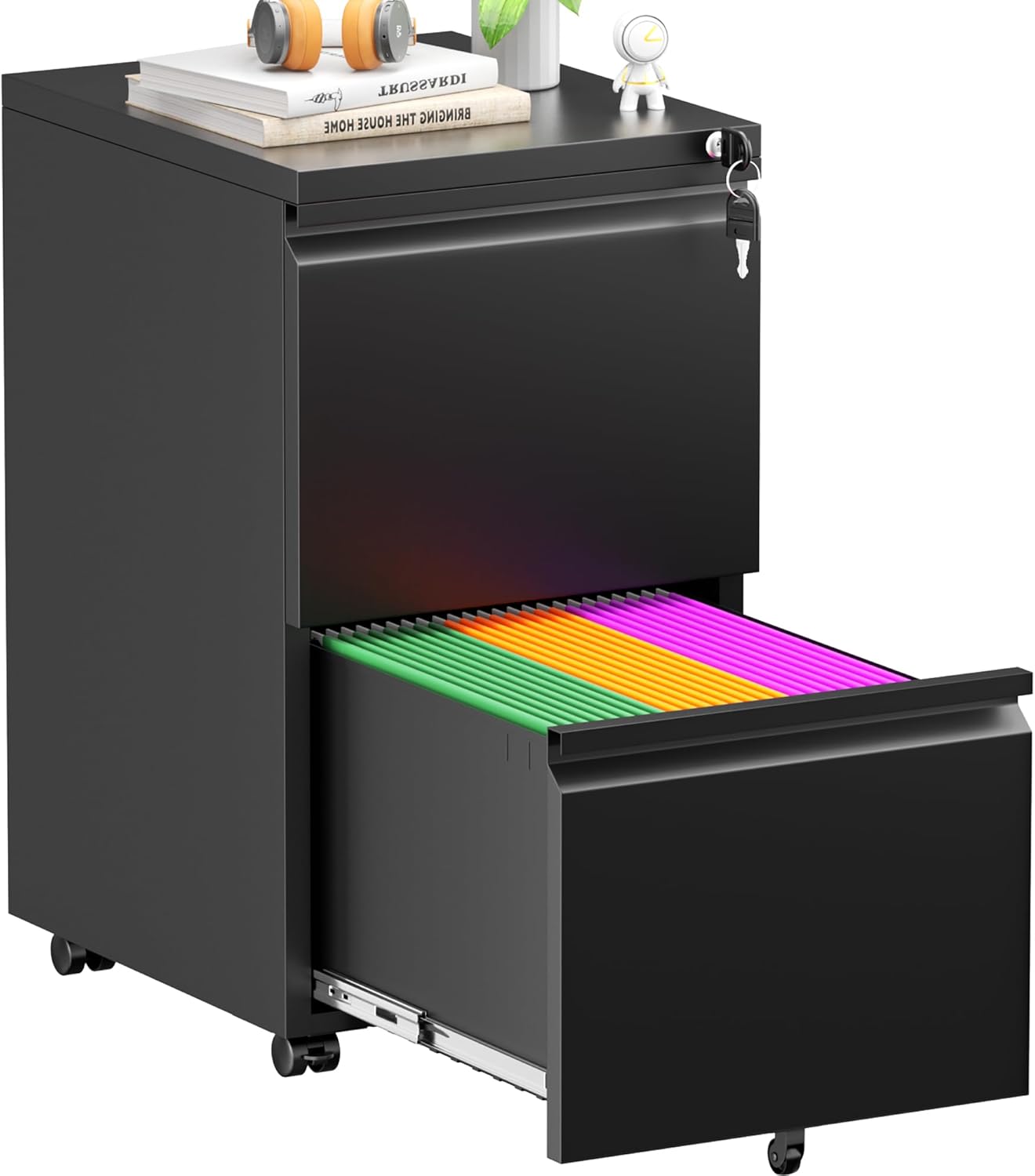 Superday 2 Drawer File Cabinet, Metal Rolling Filing Cabinet with Lock, Small File Cabinets with 2 Drawer, Filing Cabinets for Home Office Fit A4/Letter/Legal, Easy Assemble, Black