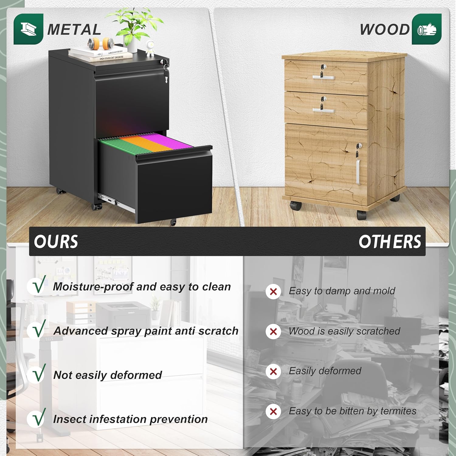 - ❤Lockable File Cabinet -- Superday file cabinet uses an interlocking system, it locks all two drawers simultaneously and comes with two keys to protect your privacy and file security.Tips: 2 keys should be kept separately in case of losing. If you accidentally lose one key, another key can be used in case of emergency.