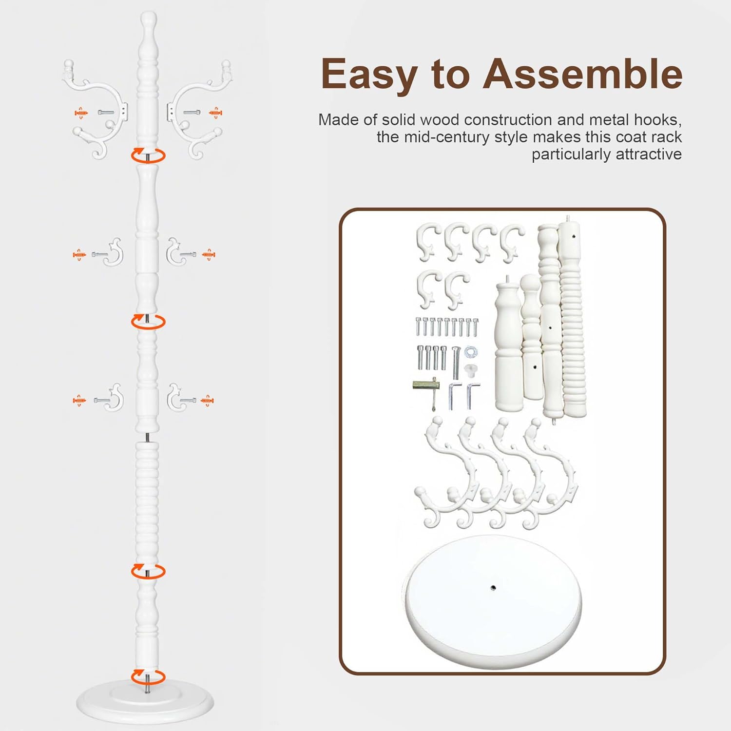 - FAST 10-MINUTE ASSEMBLY: Assembles manually in 5-10 minutes, each joint has metal screw holes with a screw-in design. Simply twist and tighten the base, 4 center pole sections and tighten 10 hooks with tools. The coat tree stand versatile design and elegant aesthetic blend seamlessly into any room, providing reliable, stylish storage for coats, accessories, bags, and more, keeping your space beautifully organized
