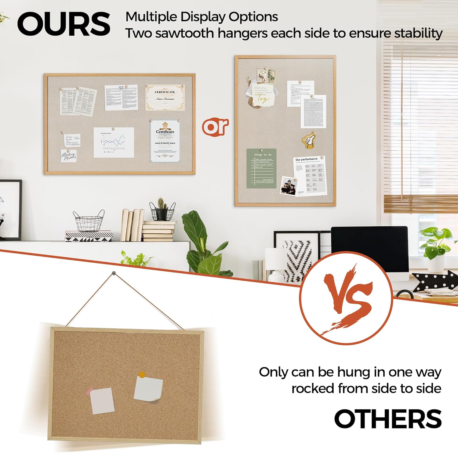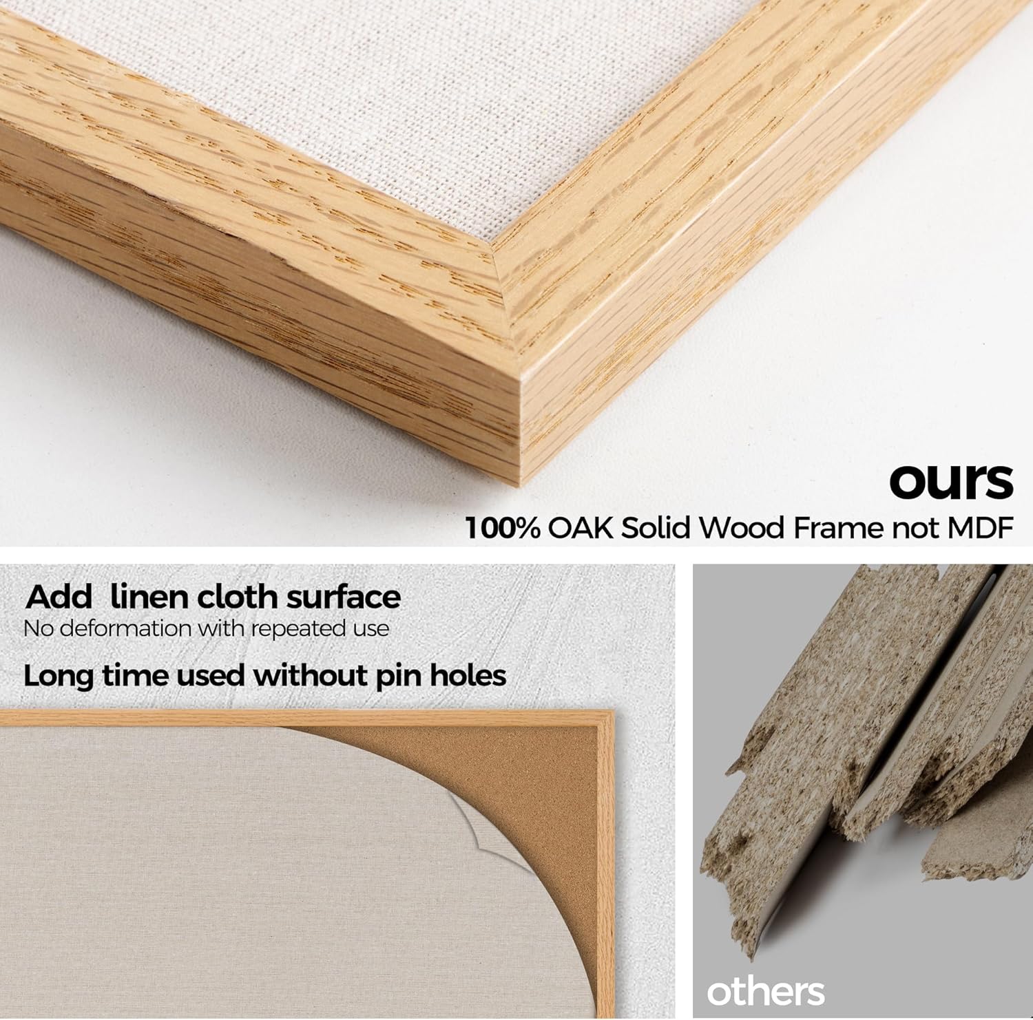 - Premium Solid Oak Frame & Durability:Crafted with a 100% natural oak wood frame, this cork bulletin board offers superior durability and a self-healing cork surface that repairs itself after pin use. The reinforced four-ply splint construction ensures maximum strength, preventing thumbtacks from puncturing through, making it a long-lasting office or home organization essential.