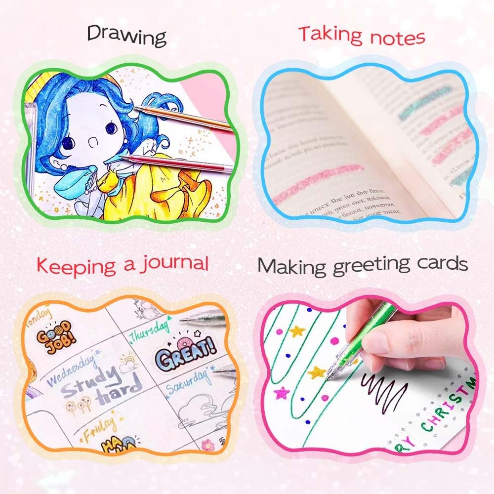 - 【Long-Lasting & Fade-Resistant Ink】:Enjoy hours of creativity with these Colorful Glitter Pens, designed with large ink tubes and a strong barrel. The gel ink is fade-resistant, supporting vibrant results on school supplies, art projects, and DIY crafts, keeping creations bright over time.